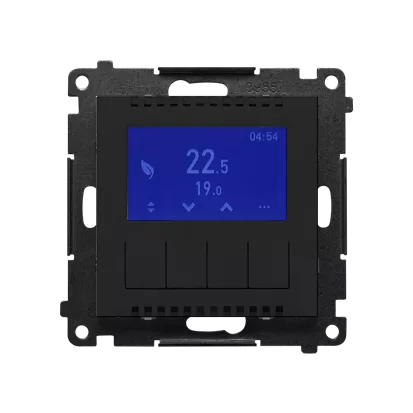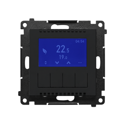 Simon 55 WMDR-18XXX1-149 Termostat programowalny z wyświetlaczem z wew/zewn czujnikiem temperatury, bez sondy (moduł) 16(2) A, 230V~; Czarny mat