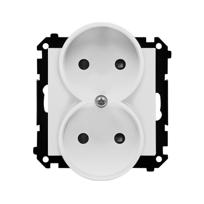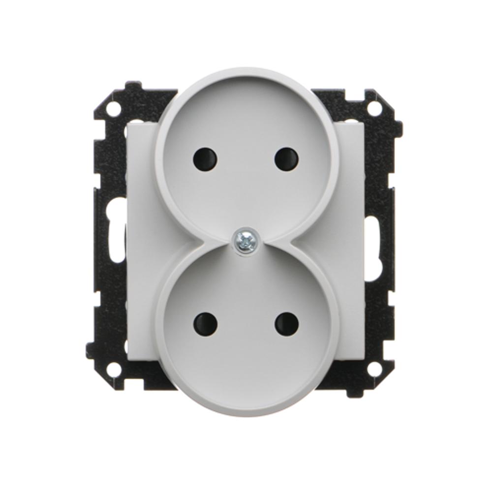 Simon 55 WMDW-00200N-114 Gniazdo wtyczkowe podwójne bez uziemienia z przesłonami (moduł) 16 A, 250 V~, szybkozłącza; Jasnoszary mat