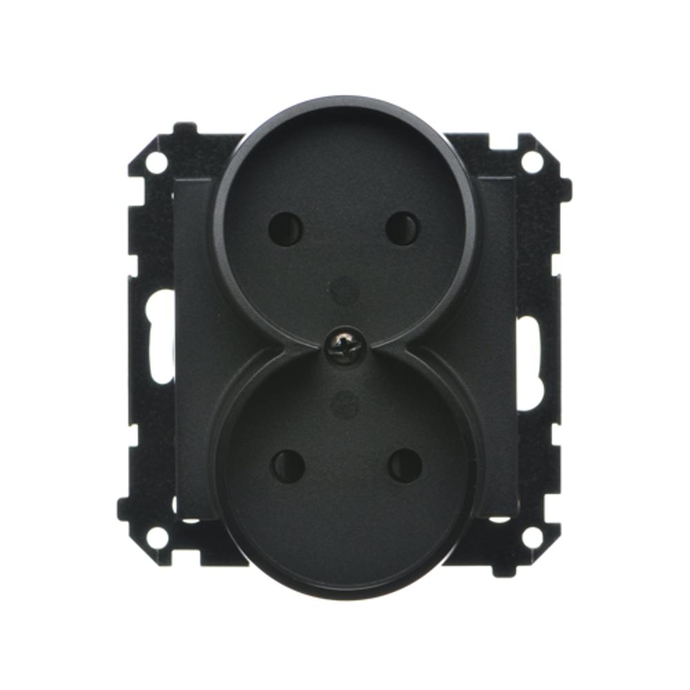 Simon 55 WMDW-00200N-149 Gniazdo wtyczkowe podwójne bez uziemienia z przesłonami (moduł) 16 A, 250 V~, szybkozłącza; Czarny mat