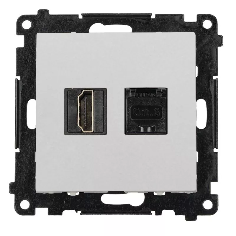 Simon 55 WMDA-P95X10-114 Gniazdo HDMI 2.1 + RJ45 kat.6. (moduł); Jasnoszary mat