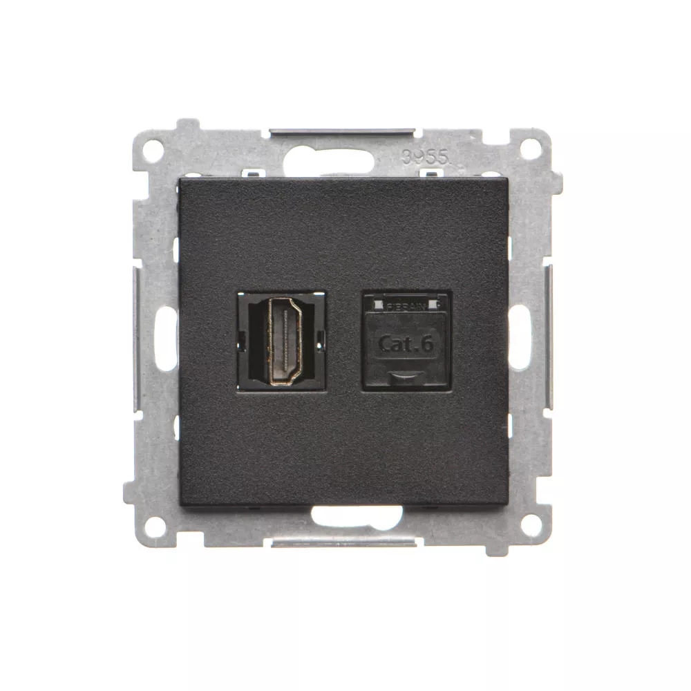 Simon 55 WMDA-P96xx7-149 Gniazdo HDMI + RJ45 kat.6. (moduł); Czarny mat