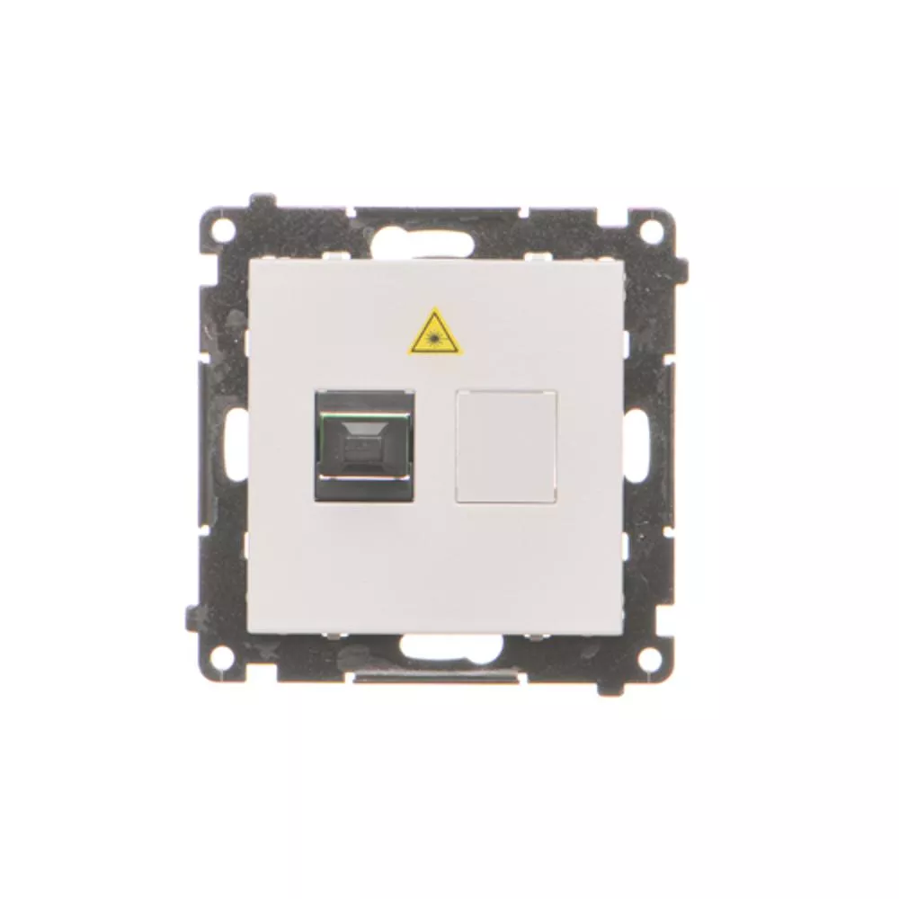 Seria Simon 55 Nazwa produktu/Rodzaj gniazdo światłowodowe / optyczne pojedyncze Kolor jasnoszary mat RAL (zbliżony) RAL 7047 Typ produktu moduł Rodzaj podłączenia / Typ zacisku wtyk Stopień ochrony IP IP20 Klasa ETIM EC001264 Gniazdko telekomunikacyjne Nadruk/Piktogram symbol "laser" Rodzaj materiału tworzywo sztuczne,