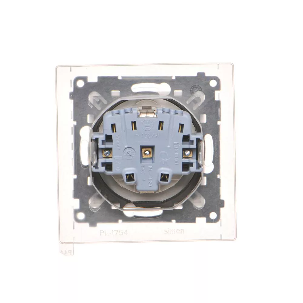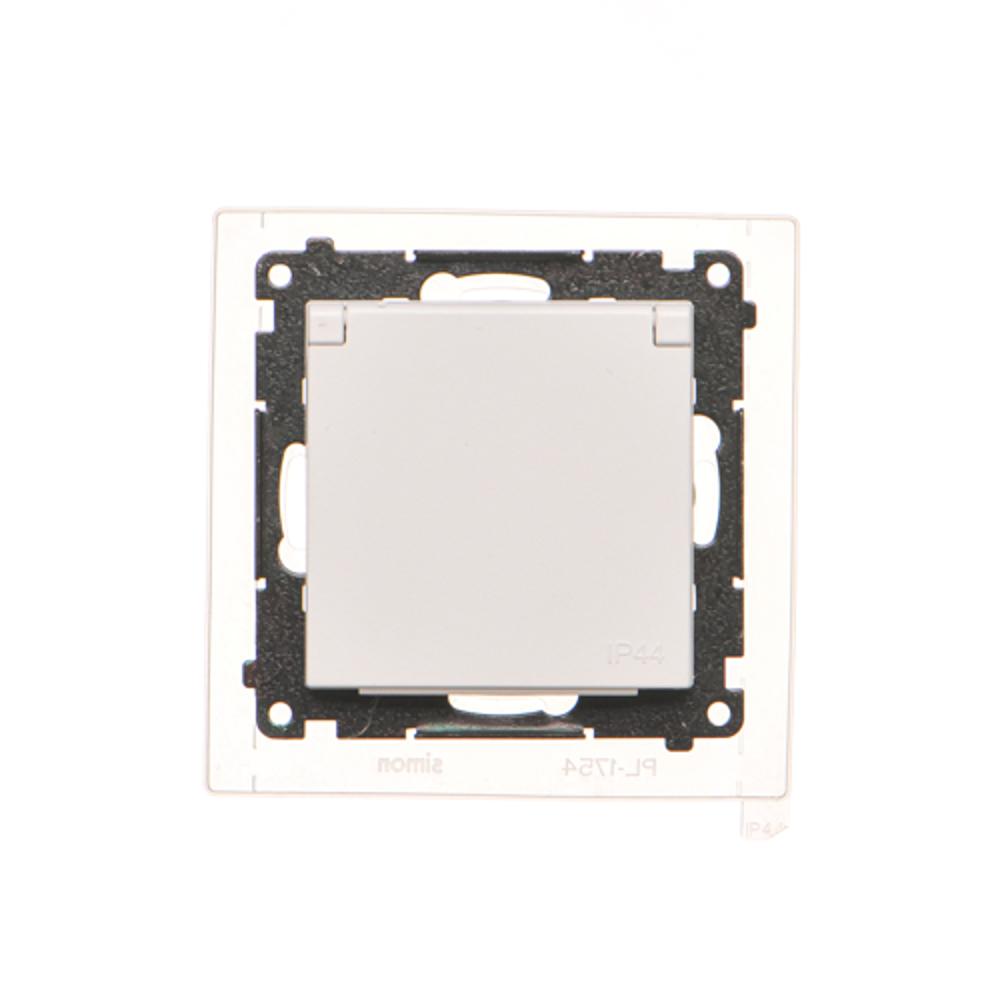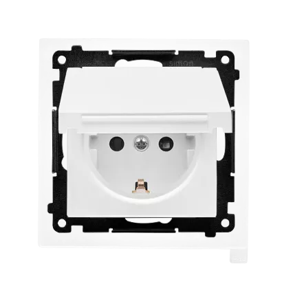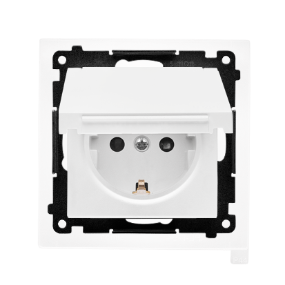 Simon 55 WMDW-321102-111 Gniazdo Schuko do wersji IP44 z przesłonami z uszczelką ramki (moduł) 16 A, 250 V~, szybkozłącza. Klapka w kolorze pokrywy; Biały mat