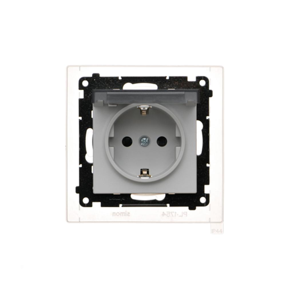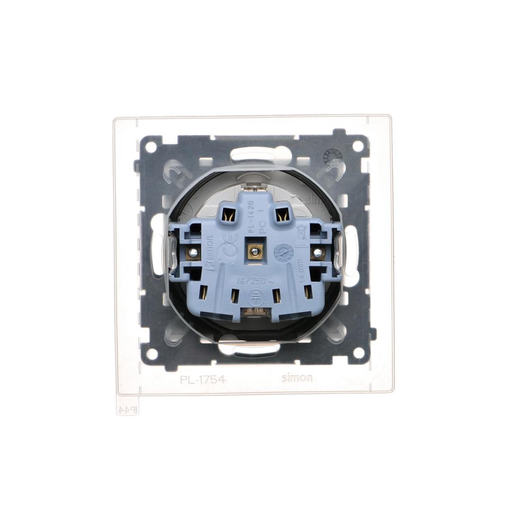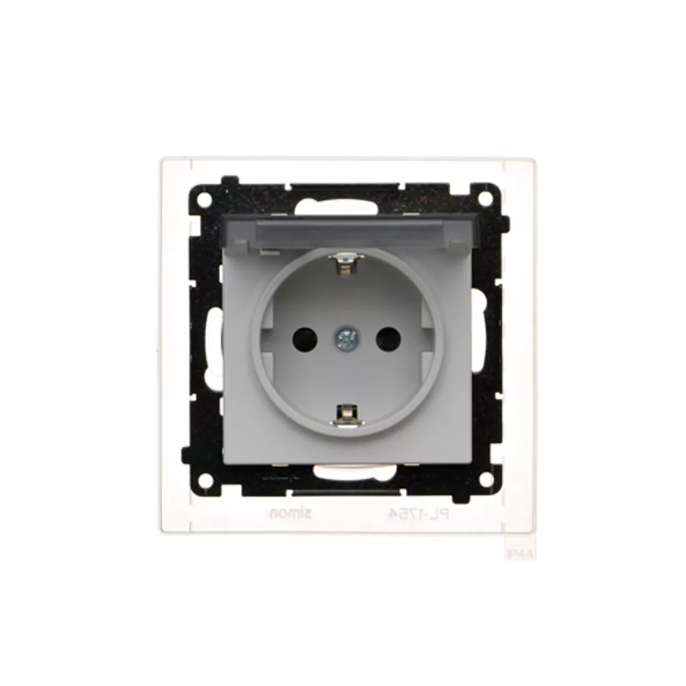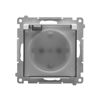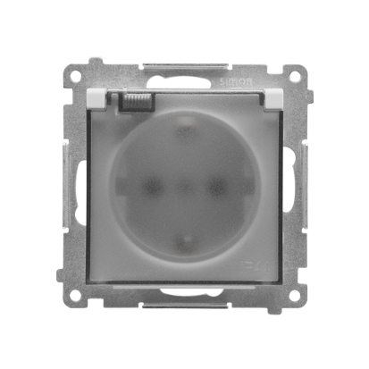 Simon 55 WMDW-321102-114A Gniazdo Schuko do wersji IP44 z przesłonami z uszczelką ramki (moduł) 16 A, 250 V~, szybkozłącza. Klapka transparentna; Jasnoszary mat