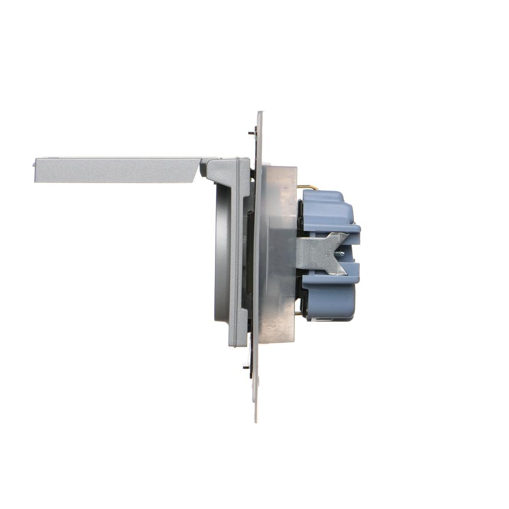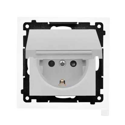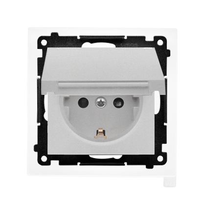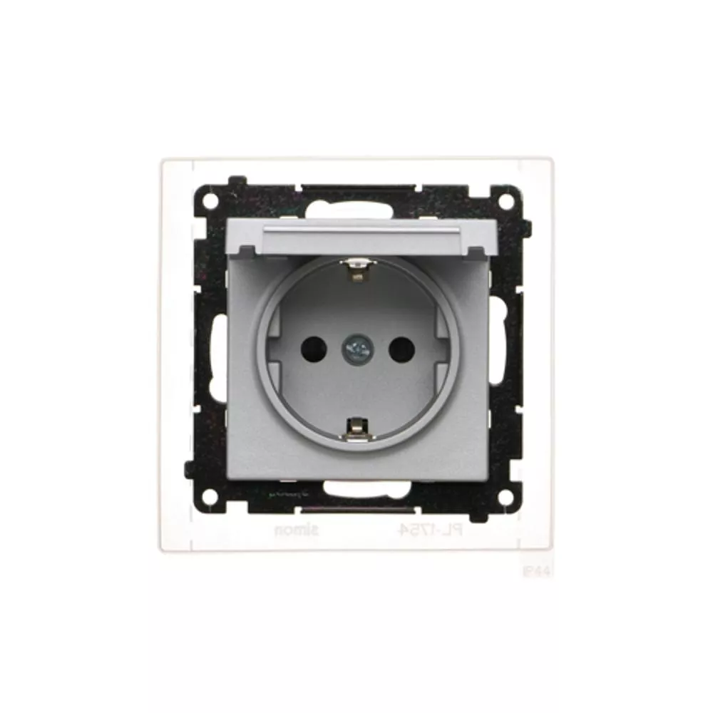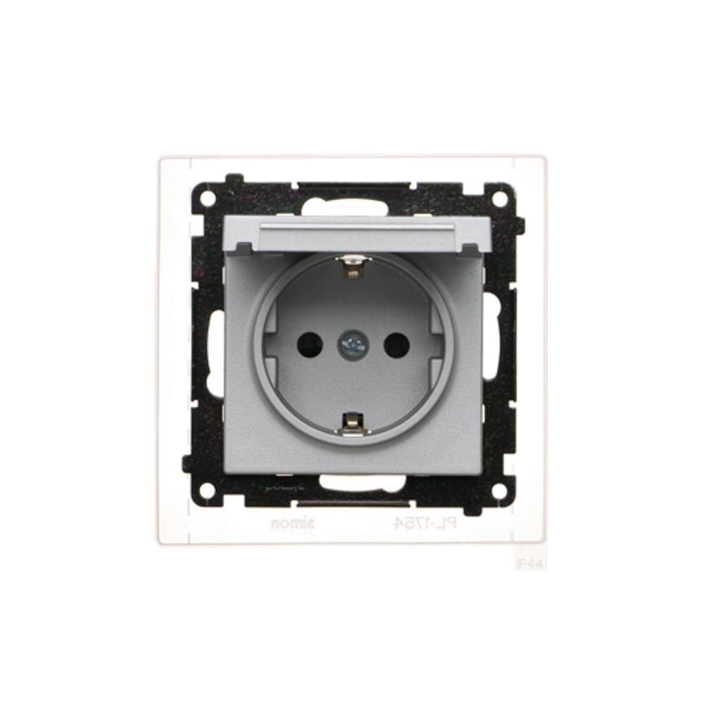 Simon 55 WMDW-321102-143 Gniazdo Schuko do wersji IP44 z przesłonami z uszczelką ramki (moduł) 16 A, 250 V~, szybkozłącza. Klapka w kolorze pokrywy; Aluminium mat