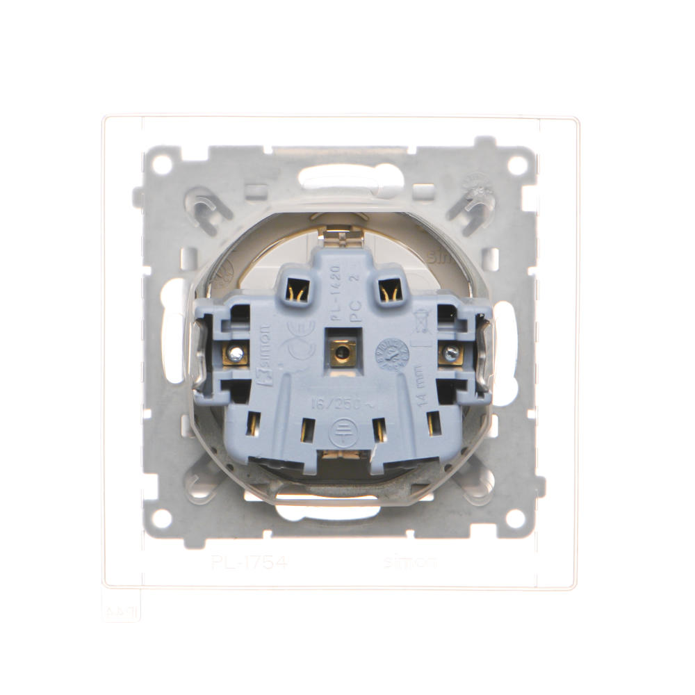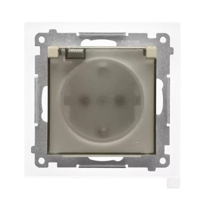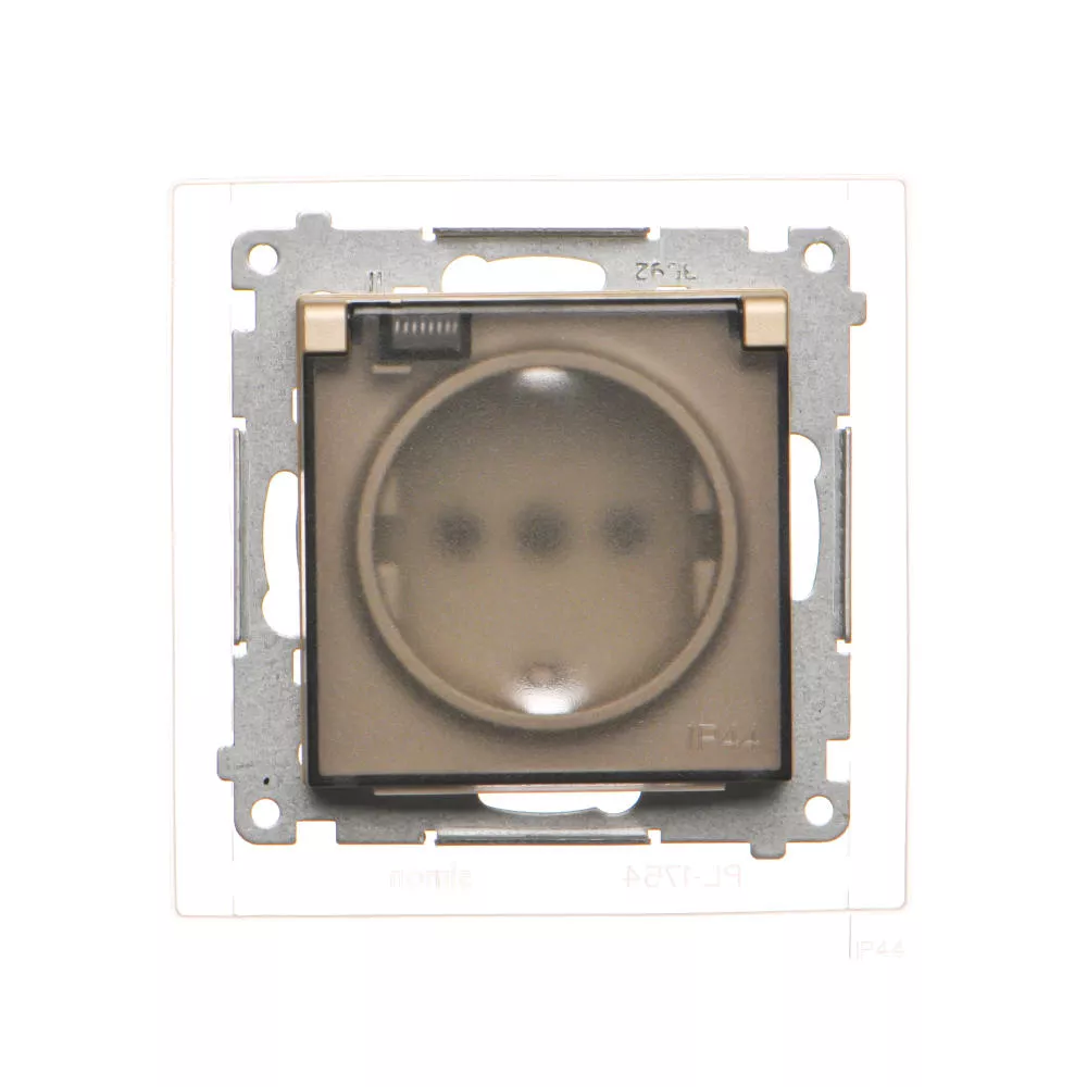 Simon 55 WMDW-321102-144A Gniazdo Schuko do wersji IP44 z przesłonami z uszczelką ramki (moduł) 16 A, 250 V~, szybkozłącza. Klapka transparentna; Szampański mat