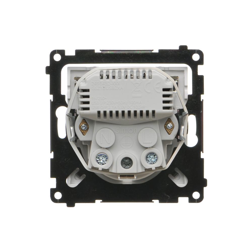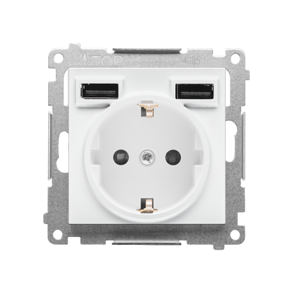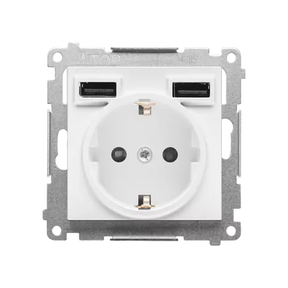 Simon 55 WMDW-001113-111 Gniazdo schuko z zintegrowaną ładowarką 2xUSB A (moduł), 2.1 A, 5 V DC, 230 V; Biały mat