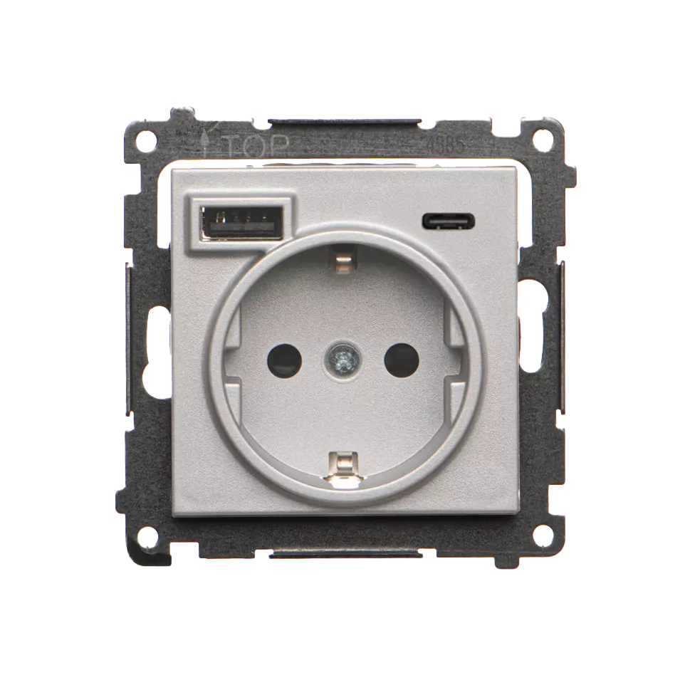 Simon 55 WMDW-001115-143 Gniazdo schuko z zintegrowaną ładowarką USB C+A (moduł), 2.1 A, 5 V DC, 230 V; Aluminium mat
