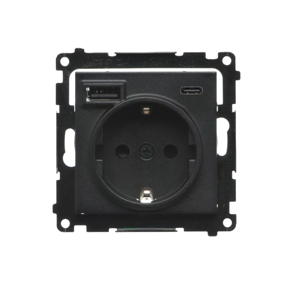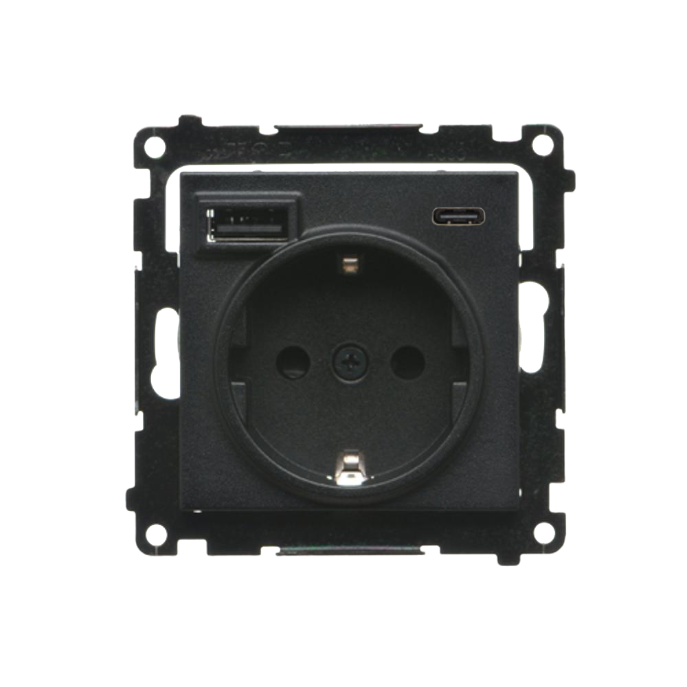 Simon 55 WMDW-001115-149 Gniazdo schuko z zintegrowaną ładowarką USB C+A (moduł), 2.1 A, 5 V DC, 230 V; Czarny mat