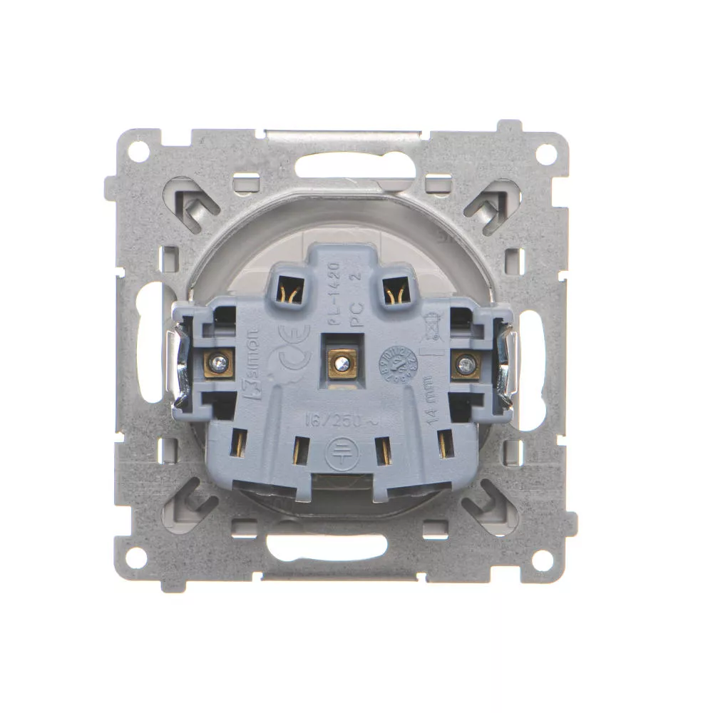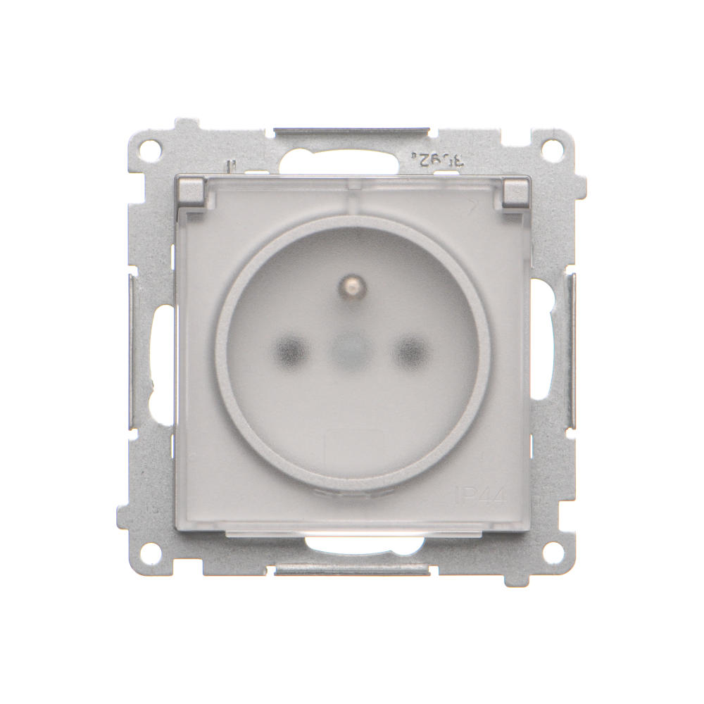Simon 55 WMDW-50122x-143A Gniazdo wtyczkowe do wersji IP44 bez uszczelki (moduł) 16 A, 250 V~, szybkozłącza. Klapka transparentna; Aluminium mat