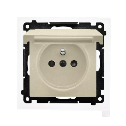 Simon 55 WMDW-50123x-144 Gniazdo wtyczkowe do wersji IP44 z uszczelką (moduł) 16 A, 250 V~, szybkozłącza. Klapka w kolorze pokrywy; Szampański mat