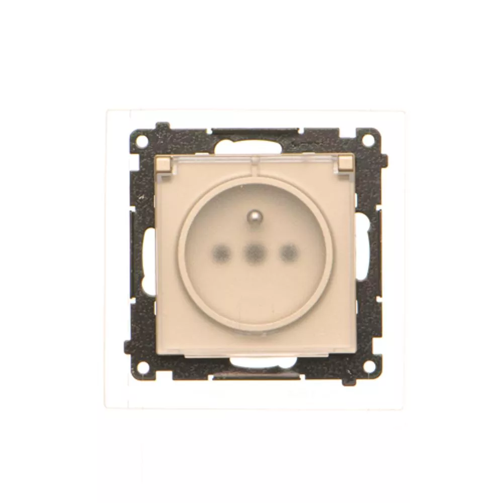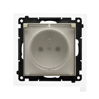 Simon 55 WMDW-50123x-144A Gniazdo wtyczkowe do wersji IP44 z uszczelką (moduł) 16 A, 250 V~, szybkozłącza. Klapka transparentna; Szampański mat