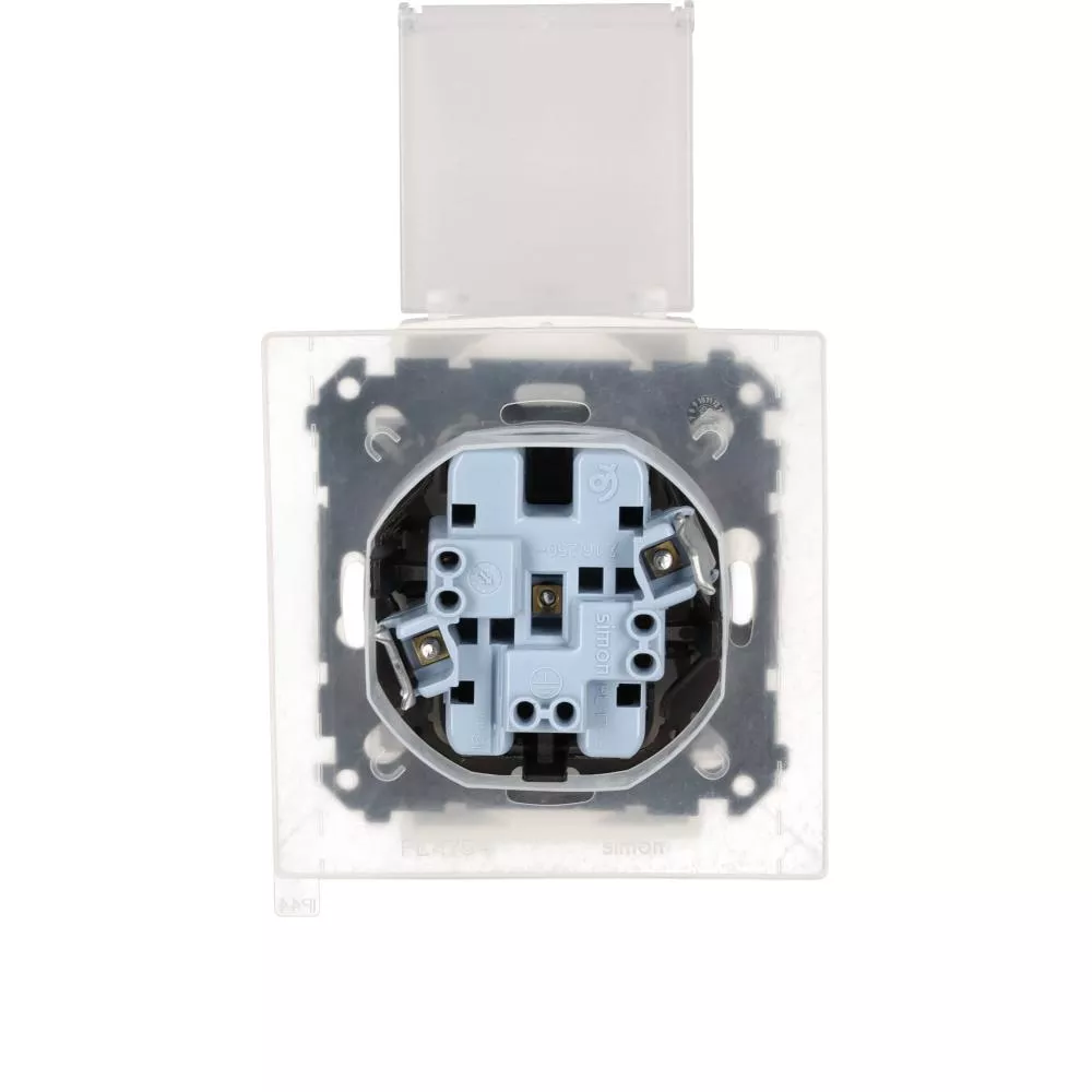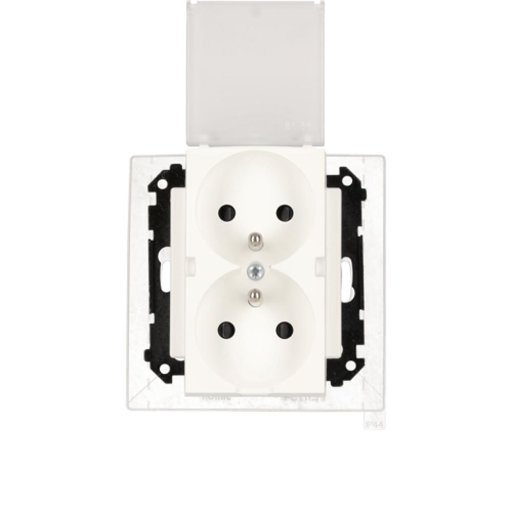 Simon 55 WMDW-00200O-111A Gniazdo wtyczkowe podwójne do wersji IP44 z uszczelką (moduł) 16 A, 250 V~, szybkozłącza. Klapka transparentna; Biały mat