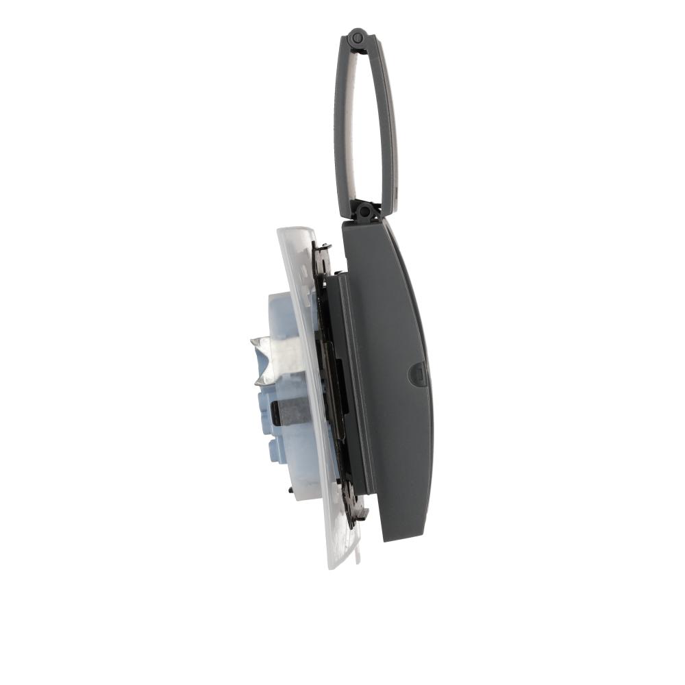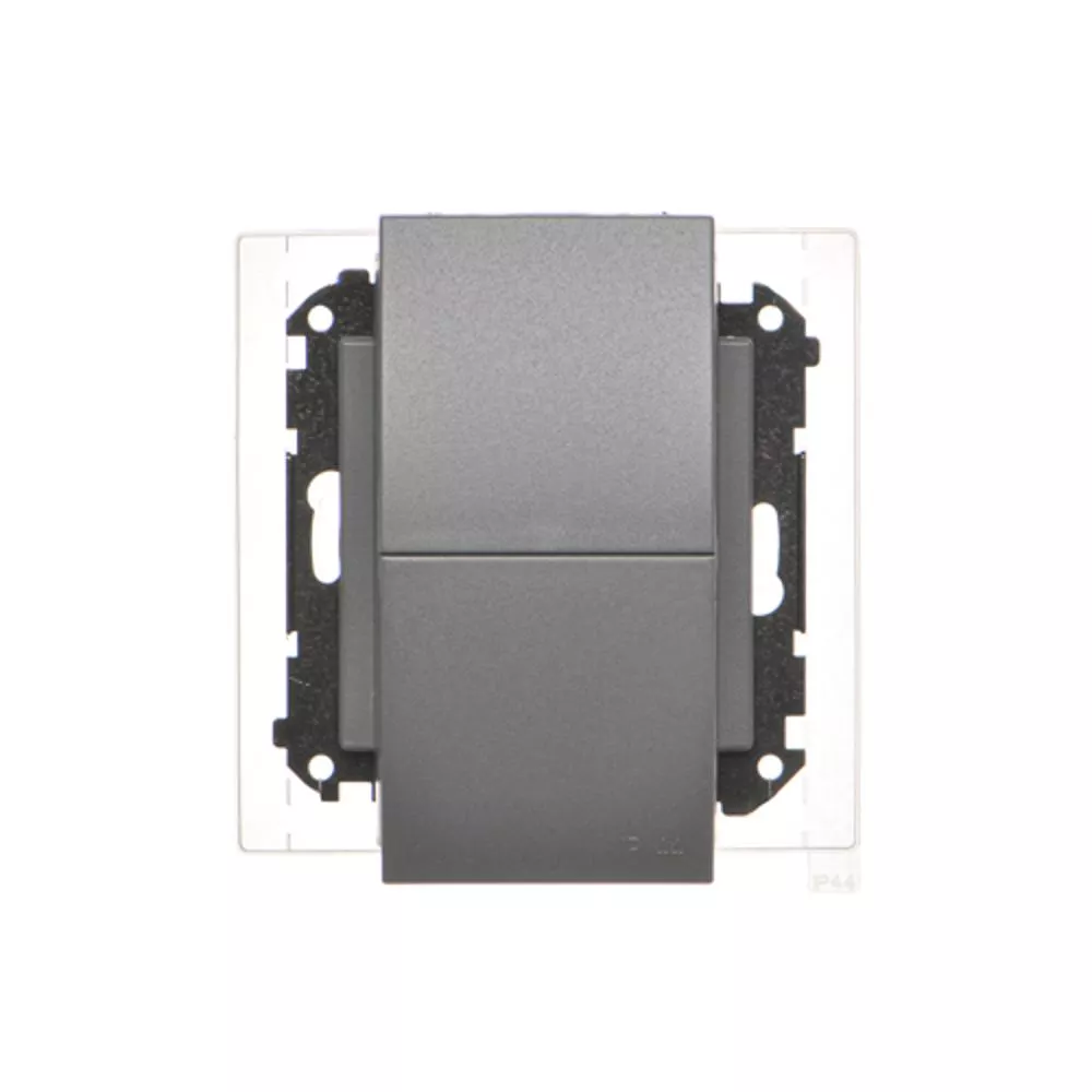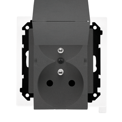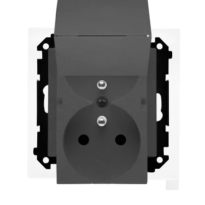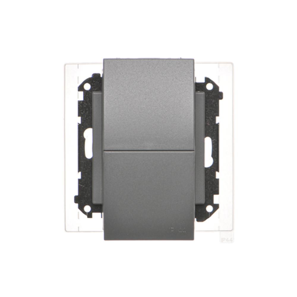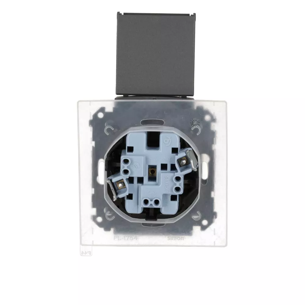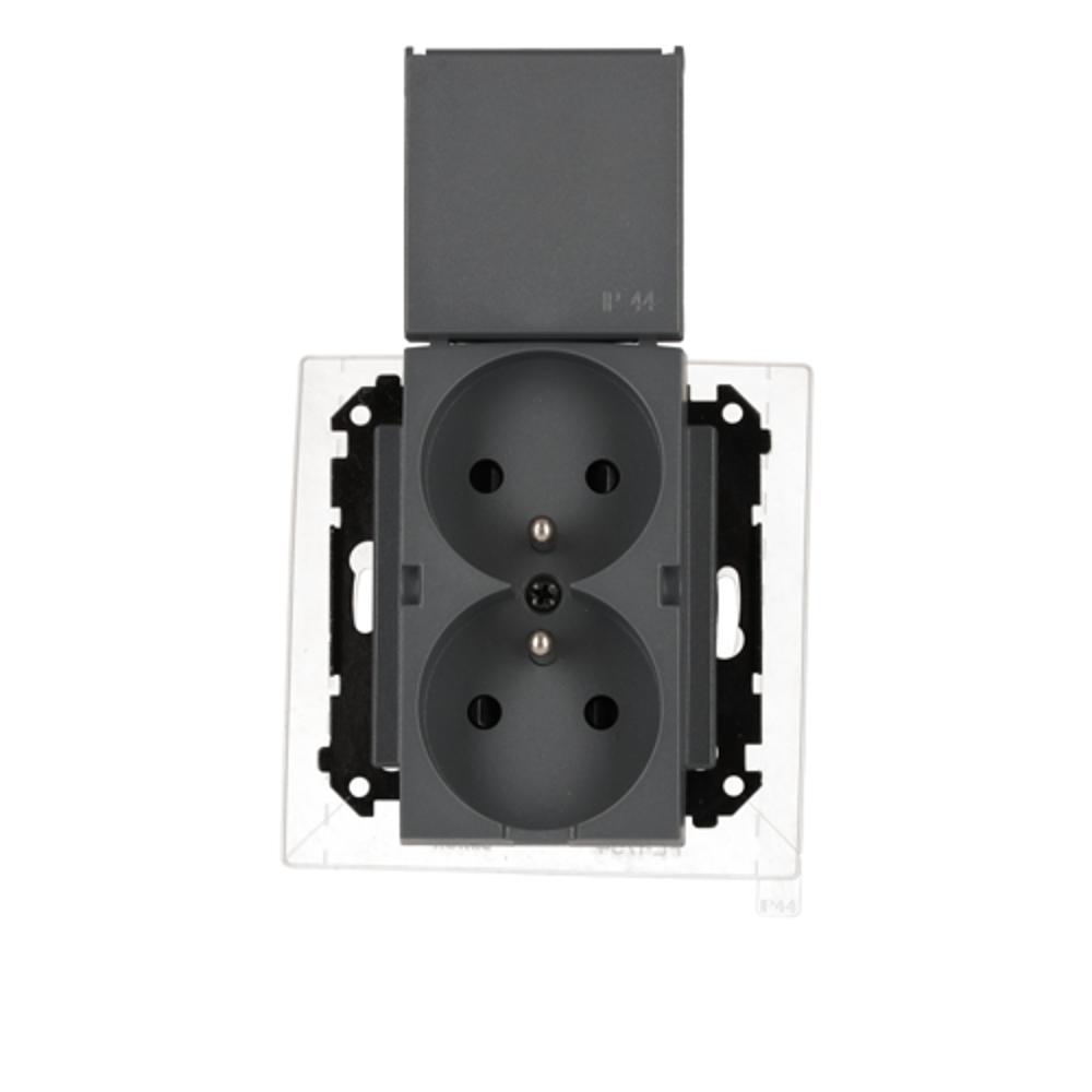 Simon 55 WMDW-00200O-116 Gniazdo wtyczkowe podwójne do wersji IP44 z uszczelką (moduł) 16 A, 250 V~, szybkozłącza. Klapka w kolorze pokrywy; Grafitowy mat
