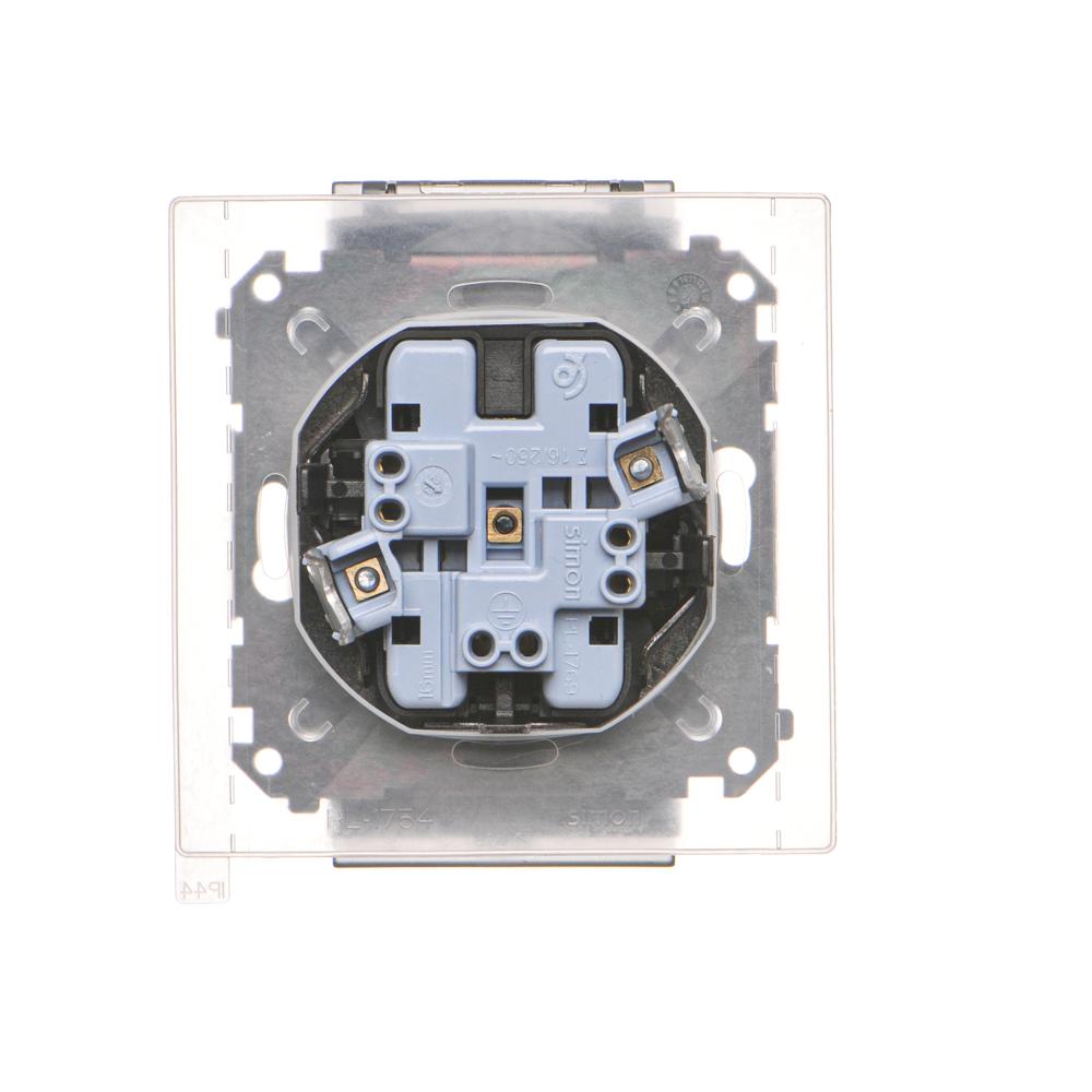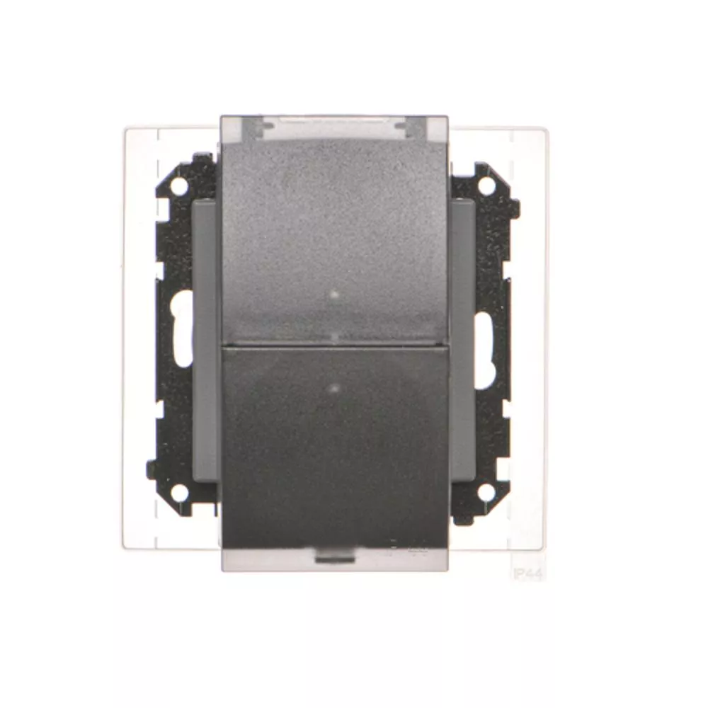 Simon 55 WMDW-00200O-116A Gniazdo wtyczkowe podwójne do wersji IP44 z uszczelką (moduł) 16 A, 250 V~, szybkozłącza. Klapka transparentna; Grafitowy mat