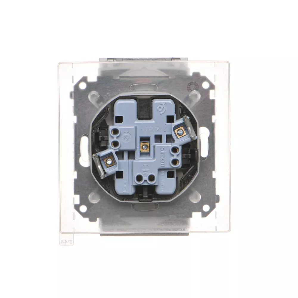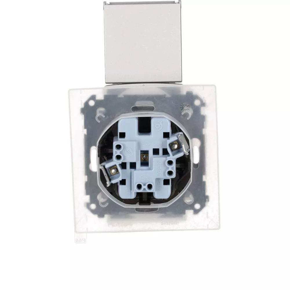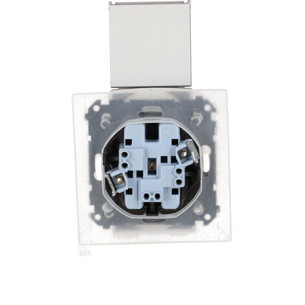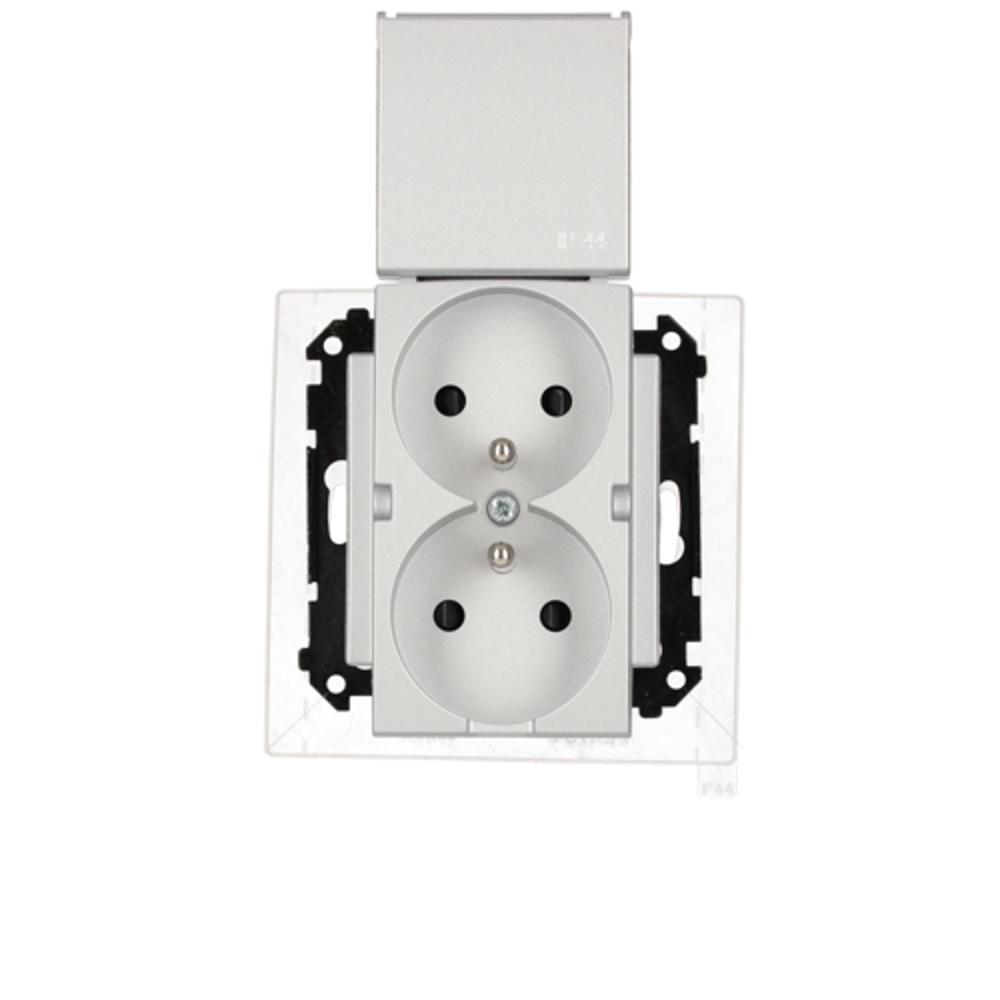 Simon 55 WMDW-00200O-143 Gniazdo wtyczkowe podwójne do wersji IP44 z uszczelką (moduł) 16 A, 250 V~, szybkozłącza. Klapka w kolorze pokrywy; Aluminium mat