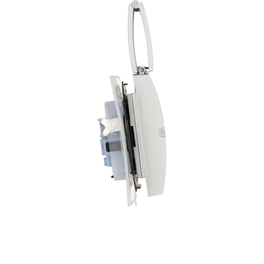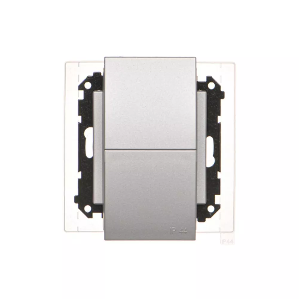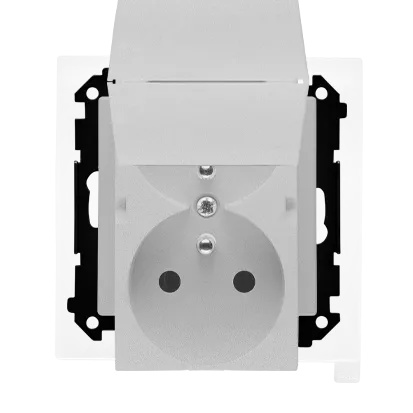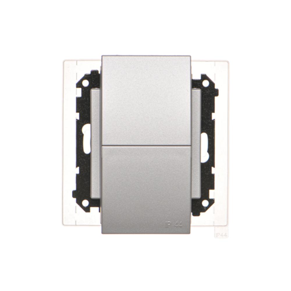 Simon 55 WMDW-00200O-143 Gniazdo wtyczkowe podwójne do wersji IP44 z uszczelką (moduł) 16 A, 250 V~, szybkozłącza. Klapka w kolorze pokrywy; Aluminium mat