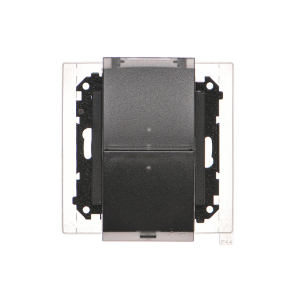 Simon 55 WMDW-00200O-149A Gniazdo wtyczkowe podwójne do wersji IP44 z uszczelką (moduł) 16 A, 250 V~, szybkozłącza. Klapka transparentna; Czarny mat