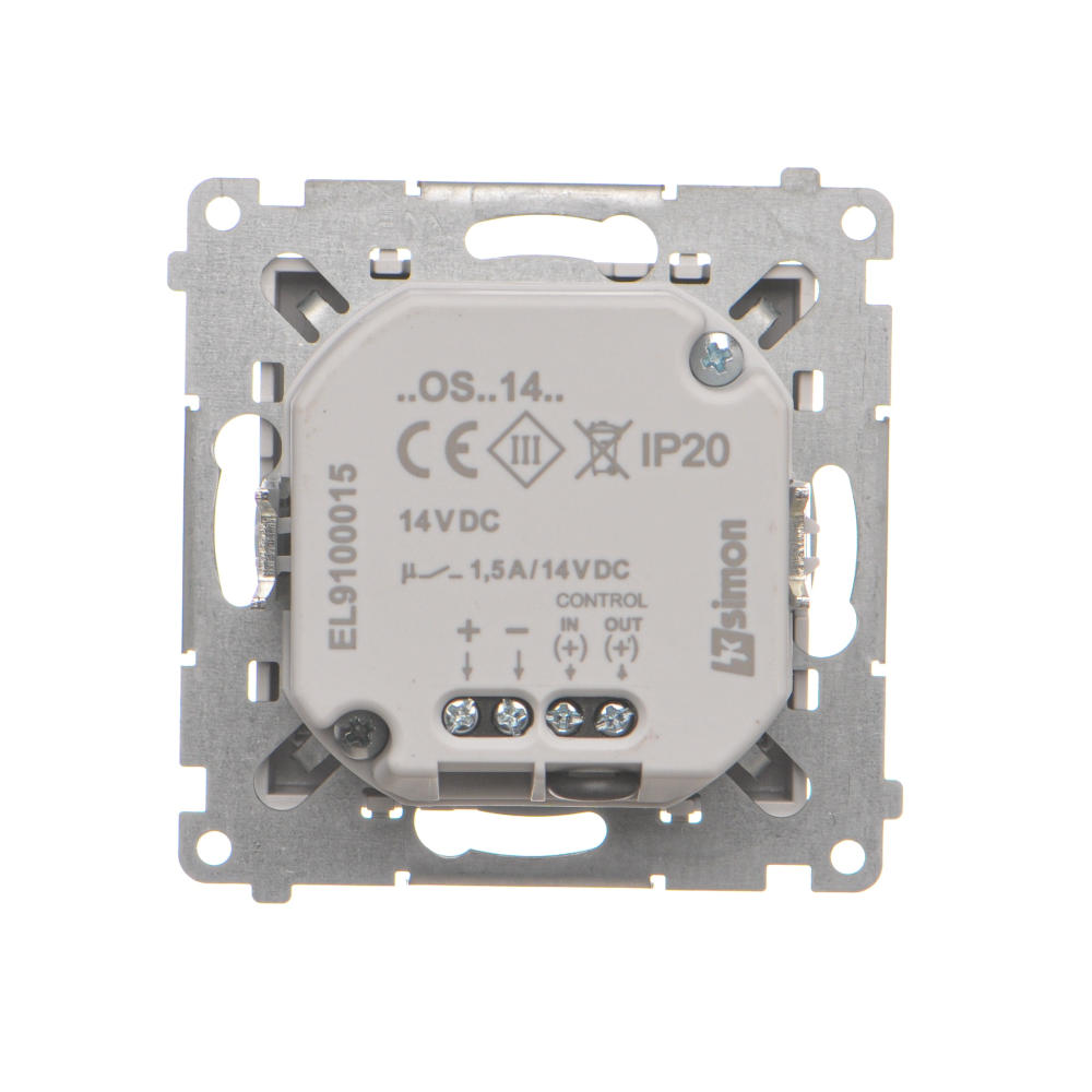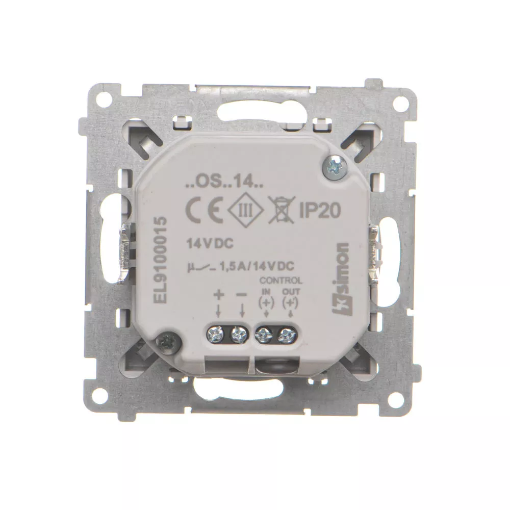 Seria Simon 55 Nazwa produktu/Rodzaj oprawa oświetleniowa LED z czujnikiem ruchu, 14V Kolor jasnoszary mat RAL (zbliżony) RAL 7047 Typ produktu moduł Napięcie znamionowe 14V Rodzaj podłączenia / Typ zacisku zaciski śrubowe Stopień ochrony IP IP20 Uwagi Zdjęcie ma charakter poglądowy, ramka montażowa produktu występuje również w wersji czarnej, ocynkowanej. Odmienny kolor wynika z ciągłego rozwoju produktów Kontakt-Simon. Klasa ETIM EC000481 Oprawa oświetleniowa ewakuacyjna (orientacyjna) Rodzaj materiału tworzywo sztuczne,