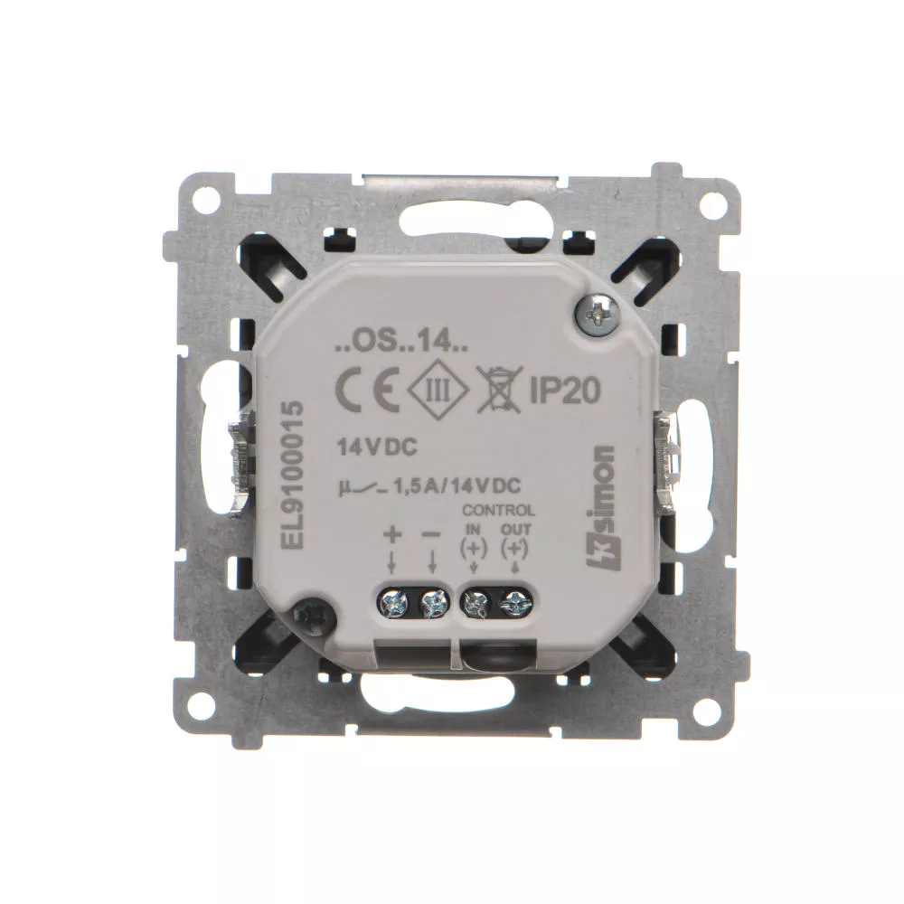 Seria Simon 55 Nazwa produktu/Rodzaj oprawa oświetleniowa LED z czujnikiem ruchu, 14V Kolor czarny mat RAL (zbliżony) RAL 9004 Typ produktu moduł Napięcie znamionowe 14V Rodzaj podłączenia / Typ zacisku zaciski śrubowe Stopień ochrony IP IP20 Uwagi Zdjęcie ma charakter poglądowy, ramka montażowa produktu występuje również w wersji czarnej, ocynkowanej. Odmienny kolor wynika z ciągłego rozwoju produktów Kontakt-Simon. Klasa ETIM EC000481 Oprawa oświetleniowa ewakuacyjna (orientacyjna) Rodzaj materiału tworzywo sztuczne,