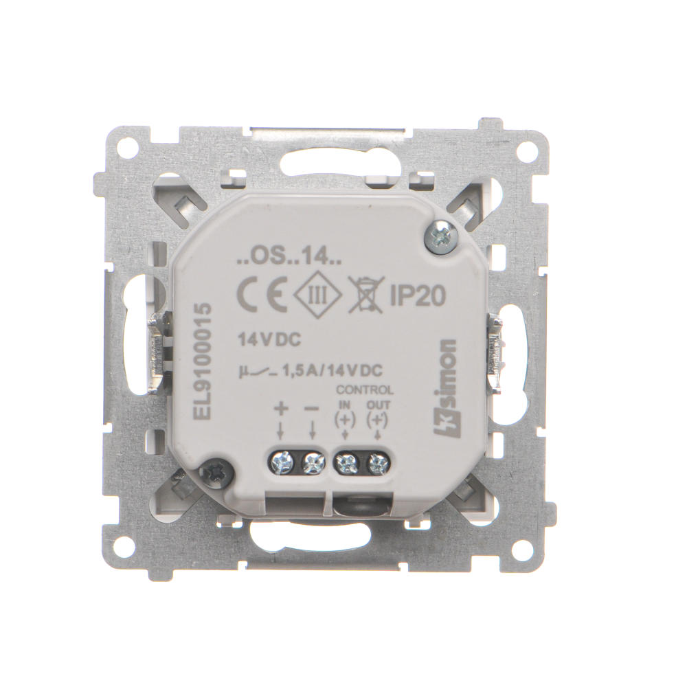 Seria Simon 55 Nazwa produktu/Rodzaj oprawa oświetleniowa LED z czujnikiem ruchu, 14V Kolor biały mat RAL (zbliżony) RAL 9003 Typ produktu moduł Napięcie znamionowe 14V Rodzaj podłączenia / Typ zacisku zaciski śrubowe Stopień ochrony IP IP20 Uwagi Zdjęcie ma charakter poglądowy, ramka montażowa produktu występuje również w wersji czarnej, ocynkowanej. Odmienny kolor wynika z ciągłego rozwoju produktów Kontakt-Simon. Klasa ETIM EC000481 Oprawa oświetleniowa ewakuacyjna (orientacyjna) Rodzaj materiału tworzywo sztuczne,