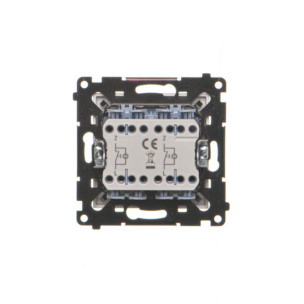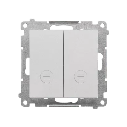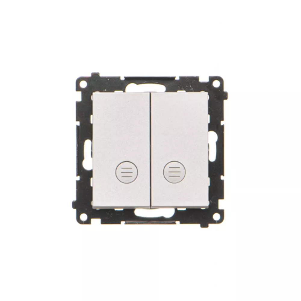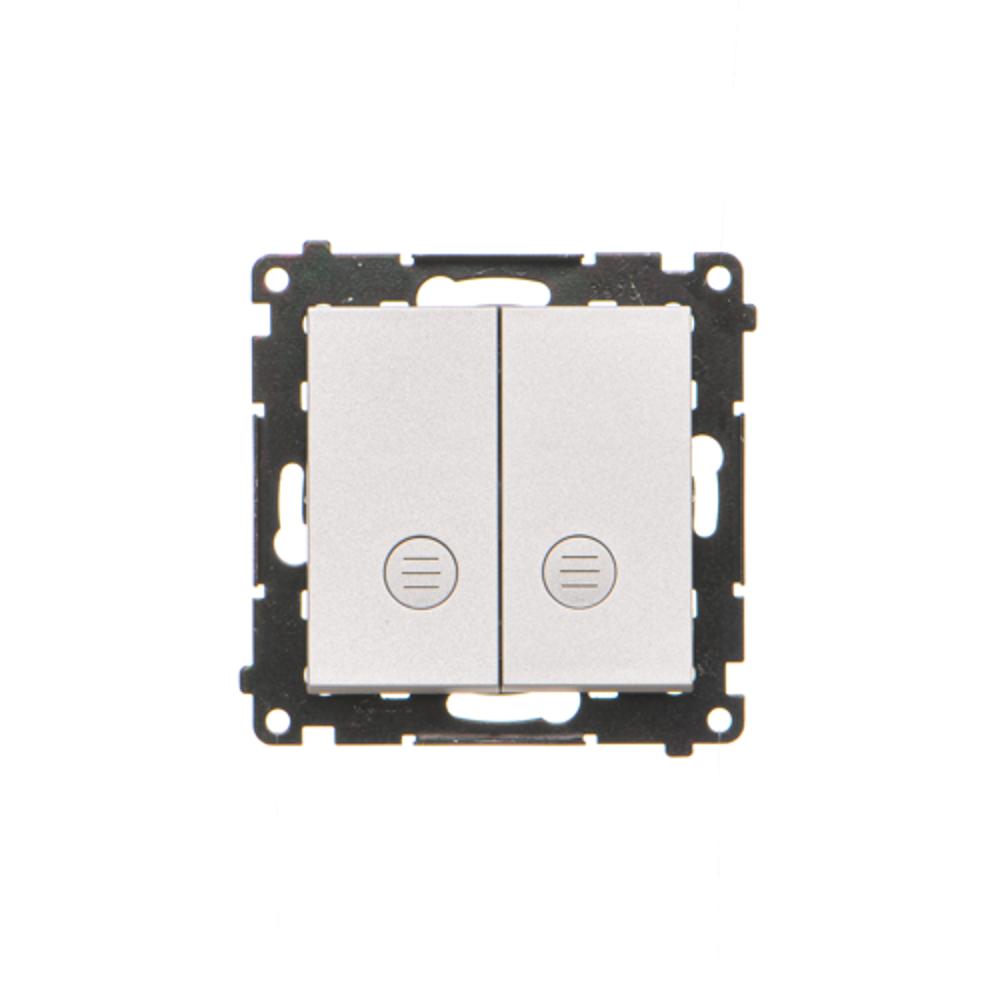 Simon 55 WMDL-0P1xx7-143 Przycisk podwójny zwierny bez piktogramu – osobne podświetlenie dla każdego klawisza (moduł) 10 AX, 250 V~, szybkozłącza. Dostępne tylko jako wersja IP20; Aluminium mat