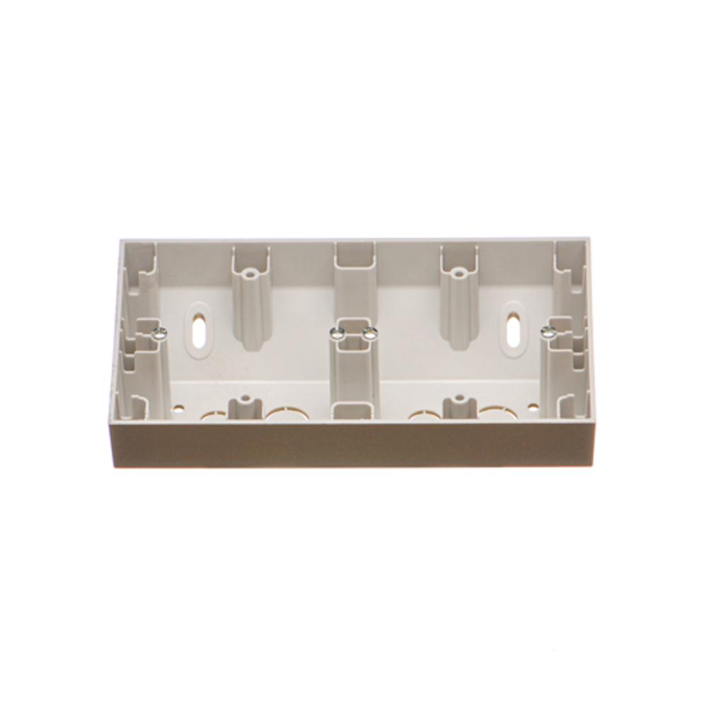 Seria Simon 55 Nazwa produktu/Rodzaj puszka natynkowa narożna 2-krotna Kolor szampański mat RAL (zbliżony) RAL 1035 Typ produktu kompletny produkt Stopień ochrony IP IP20 Klasa ETIM EC000080 Puszka natynkowa Rodzaj materiału tworzywo sztuczne,