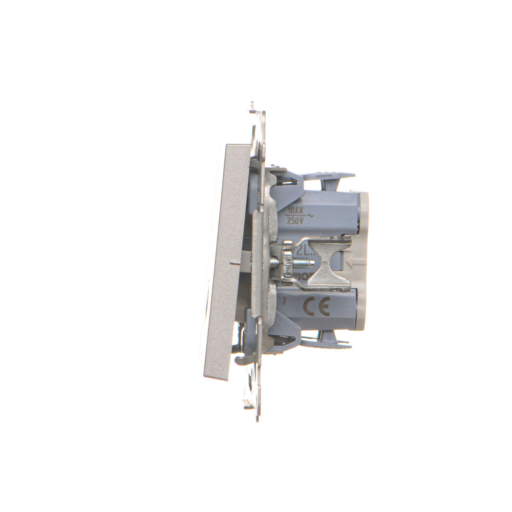 Simon 55 WMDL-0P1xx5-143 Łącznik dwubiegunowy z podświetleniem LED (moduł) 10 AX, 250 V~, szybkozłącza; Aluminium mat
