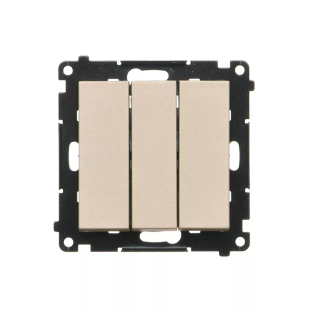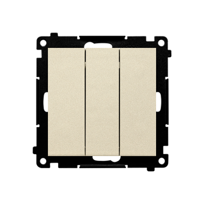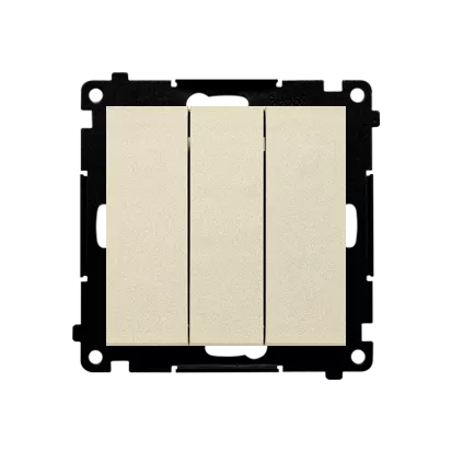 Seria Simon 55 Nazwa produktu/Rodzaj łącznik potrójny z podświetleniem Kolor szampański mat RAL (zbliżony) RAL 1035 Typ produktu moduł Prąd znamionowy świetlówkowy 10AX Napięcie znamionowe 250V Rodzaj podłączenia / Typ zacisku szybkozłącza Stopień ochrony IP IP20 Podświetlenie wbudowane,