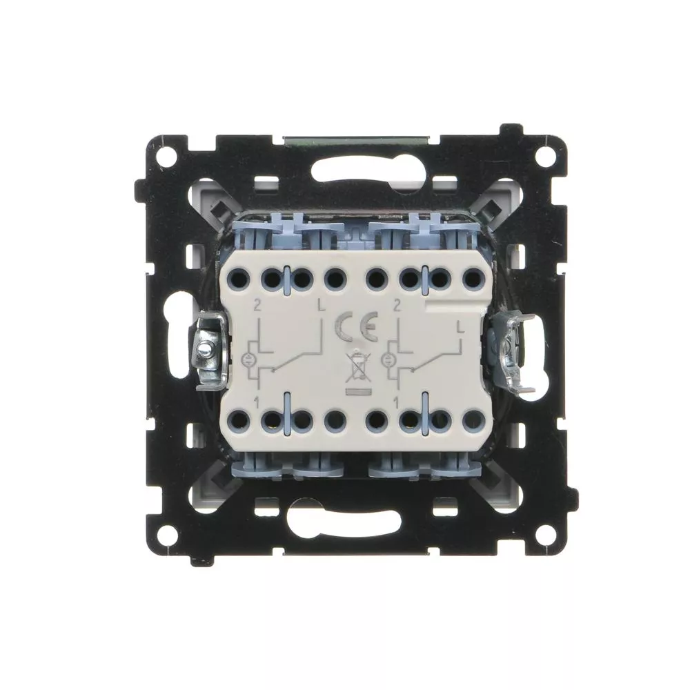 bezhalogenowe Wykończenie powierzchni matowe Sposób montażu [ETIM] montaż podtynkowy Sposób mocowania pazurki / wkręty Wysokość produktu 75mm Szerokość produktu 75mm Głębokość produktu 39.5mm Głębokość wbudowania 26mm Metoda eksploatacji/Sposób działania klawisz kołyskowy Ilość klawiszy / dźwigni 2 Układ połączeń Łącznik schodowy podwójny Ilość w opakowaniu zbiorczym 10 Jednostka miary szt. EAN opakowanie jednostkowe 5902787892395 Typ opak. jedn. folia zgrzewana Wys. opak. jedn. 16cm Szer. opak. jedn. 11cm Długość opakowania jednostkowego 4.5cm Waga produktu w opakowaniu jednostkowym 0.079kg Typ opakowania zbiorczego pudełko zamykane Wysokość opakowania zbiorczego 10cm Szerokość opakowania zbiorczego 19cm Długość opakowania zbiorczego 23cm ID_frame 2257,