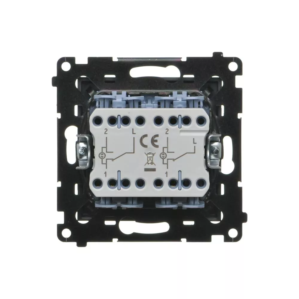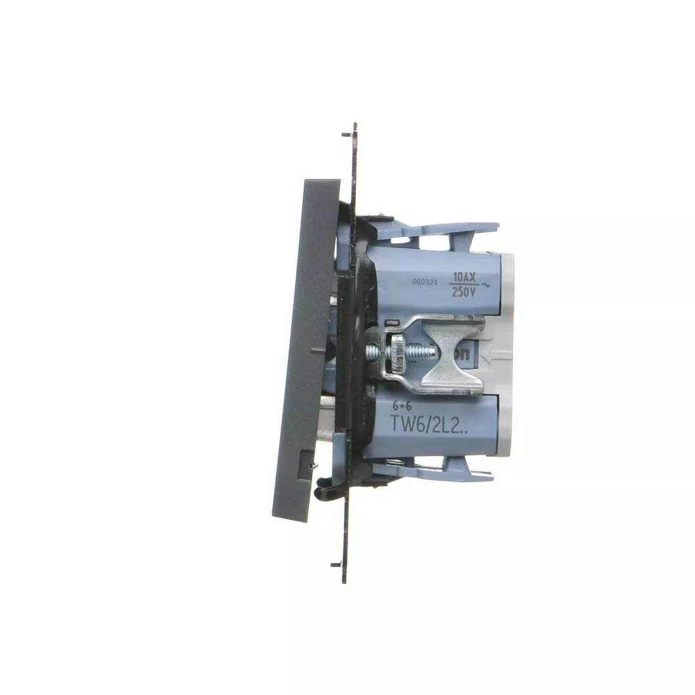 Simon 55 WMDL-TW6-2L2-116 Łącznik schodowy podwójny z podświetleniem – osobne podświetlenie dla każdego klawisza (moduł) 10 AX, 250 V~, szybkozłącza; Grafitowy mat
