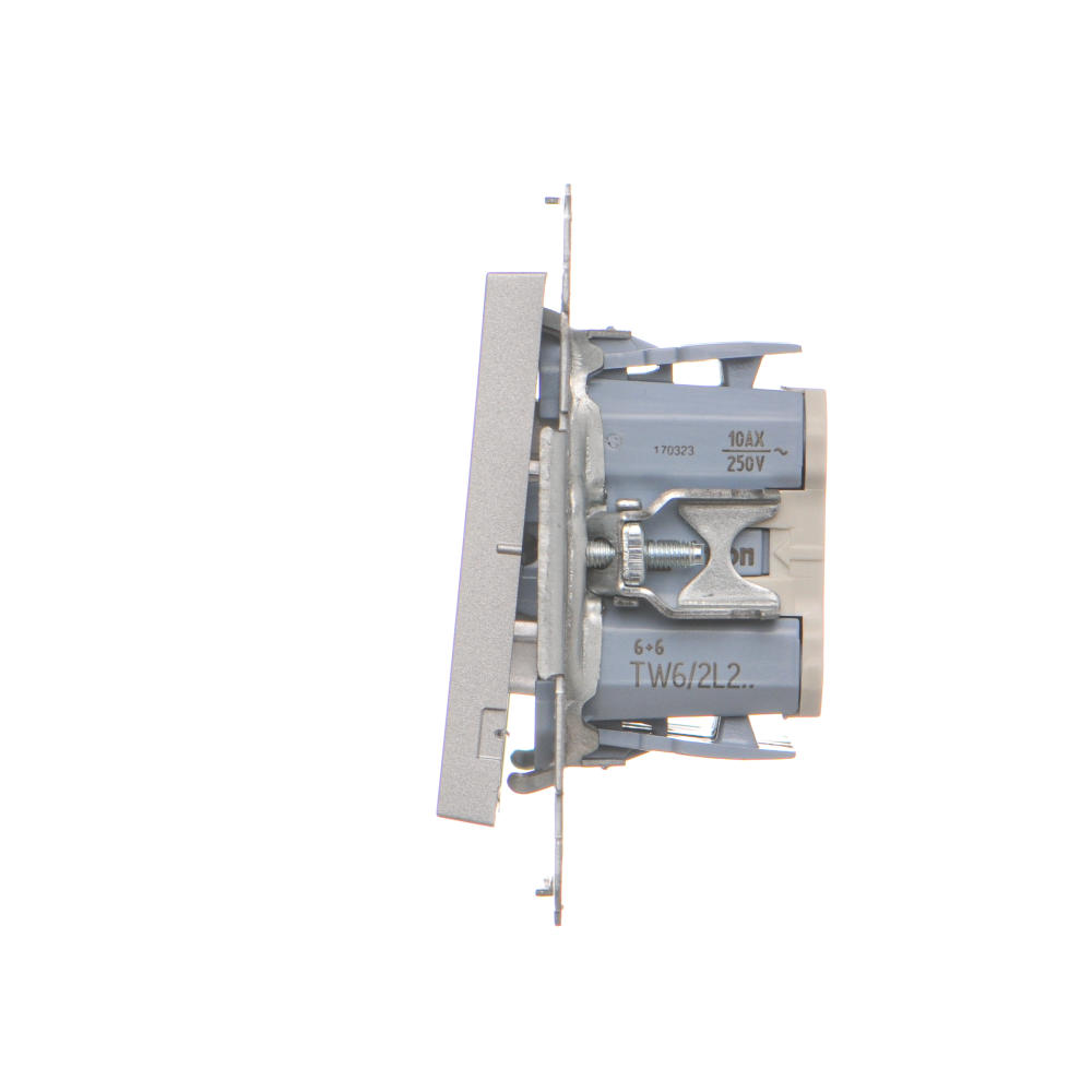 Simon 55 WMDL-TW6-2L2-143 Łącznik schodowy podwójny z podświetleniem – osobne podświetlenie dla każdego klawisza (moduł) 10 AX, 250 V~, szybkozłącza; Aluminium mat