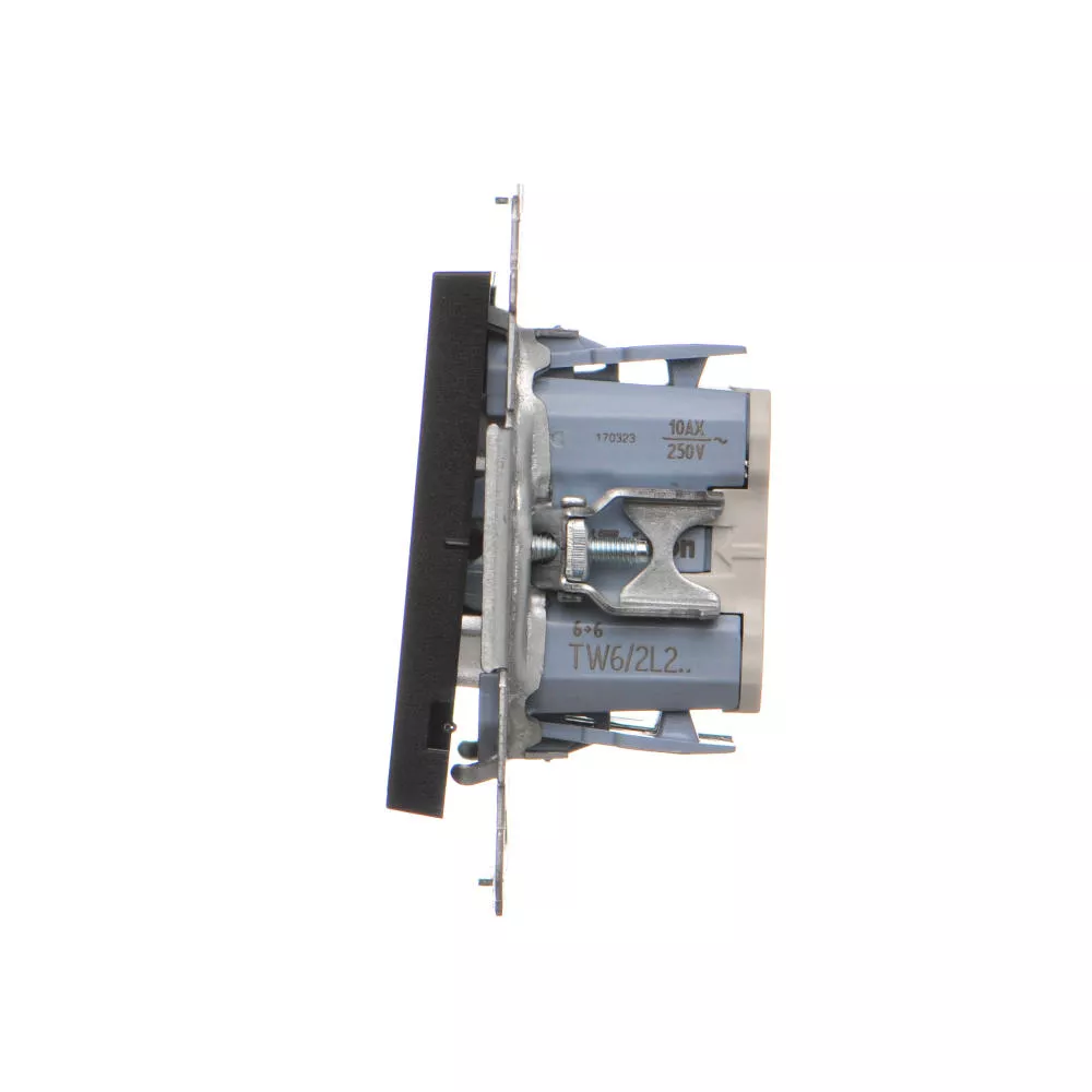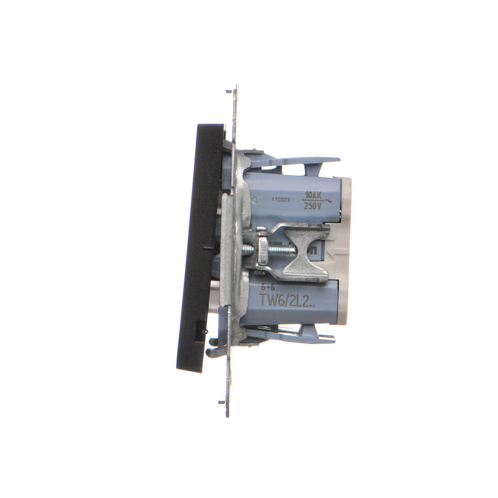 Simon 55 WMDL-TW6-2L2-149 Łącznik schodowy podwójny z podświetleniem – osobne podświetlenie dla każdego klawisza (moduł) 10 AX, 250 V~, szybkozłącza; Czarny mat