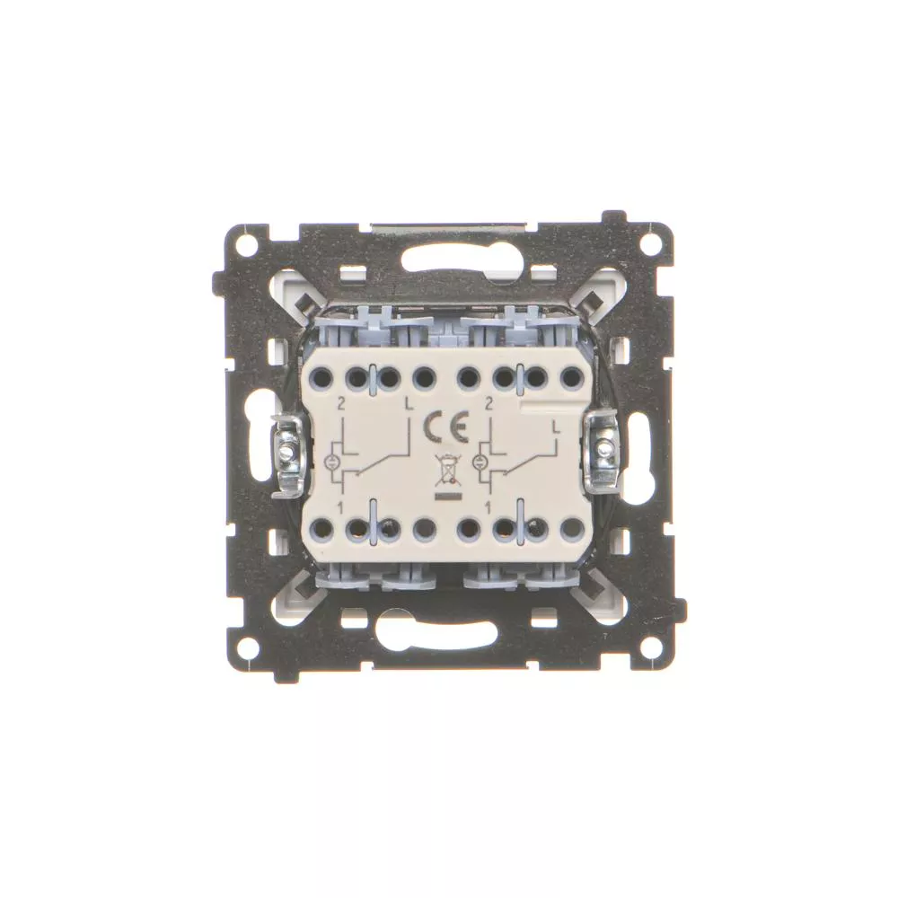 bezhalogenowe Wykończenie powierzchni matowe Sposób montażu [ETIM] montaż podtynkowy Sposób mocowania pazurki / wkręty Wysokość produktu 75mm Szerokość produktu 75mm Głębokość produktu 39.5mm Głębokość wbudowania 26mm Metoda eksploatacji/Sposób działania klawisz kołyskowy Ilość klawiszy / dźwigni 2 Układ połączeń Łącznik schodowy podwójny Ilość w opakowaniu zbiorczym 10 Jednostka miary szt. EAN opakowanie jednostkowe 5902787892449 Typ opak. jedn. folia zgrzewana Wys. opak. jedn. 16cm Szer. opak. jedn. 11cm Długość opakowania jednostkowego 4.5cm Waga produktu w opakowaniu jednostkowym 0.079kg Typ opakowania zbiorczego pudełko zamykane Wysokość opakowania zbiorczego 10cm Szerokość opakowania zbiorczego 19cm Długość opakowania zbiorczego 23cm ID_frame 2257,