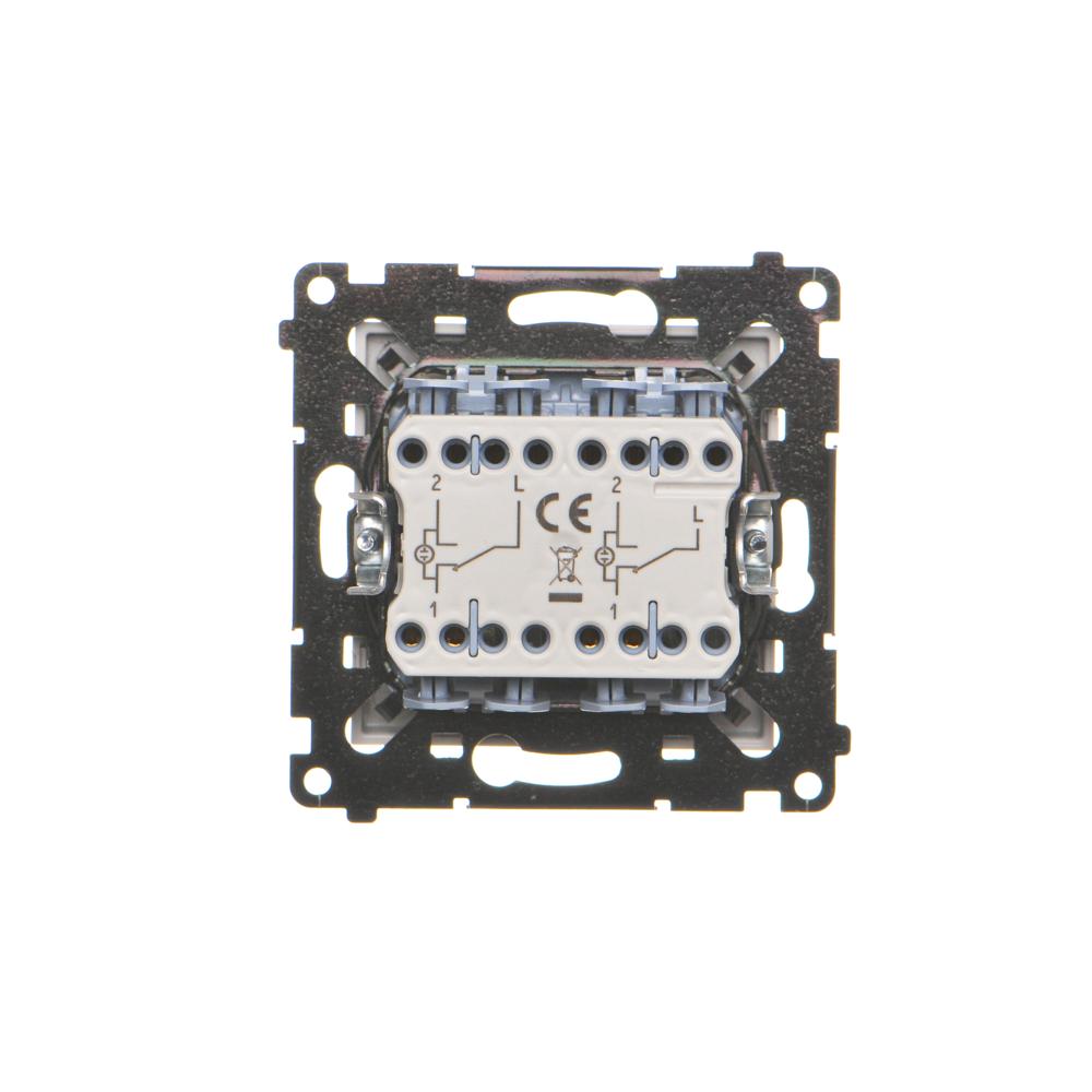 Simon 55 WMDL-TW6-2L2X-114 Łącznik schodowy podwójny z podświetleniem bez piktogramu – osobne podświetlenie dla każdego klawisza (moduł) 10 AX, 250 V~, szybkozłącza; Jasnoszary mat