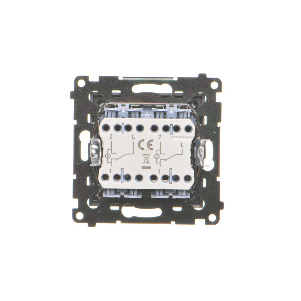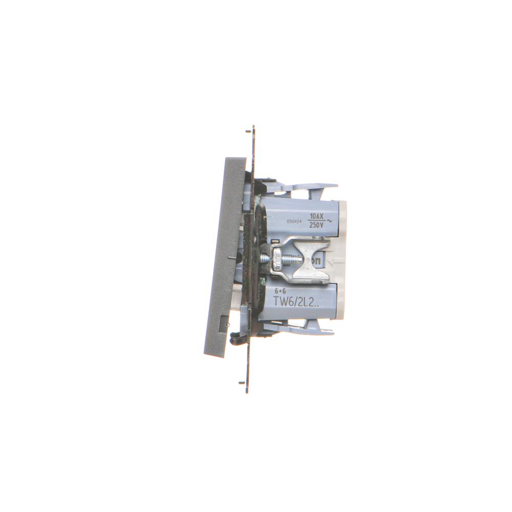 Simon 55 WMDL-TW6-2L2X-116 Łącznik schodowy podwójny z podświetleniem bez piktogramu – osobne podświetlenie dla każdego klawisza (moduł) 10 AX, 250 V~, szybkozłącza; Grafitowy mat