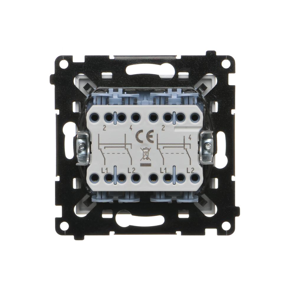 Simon 55 WMDL-TW7-2X-143 Łącznik krzyżowy podwójny bez piktogramu (moduł) 10 AX, 250 V~, szybkozłącza; Aluminium mat