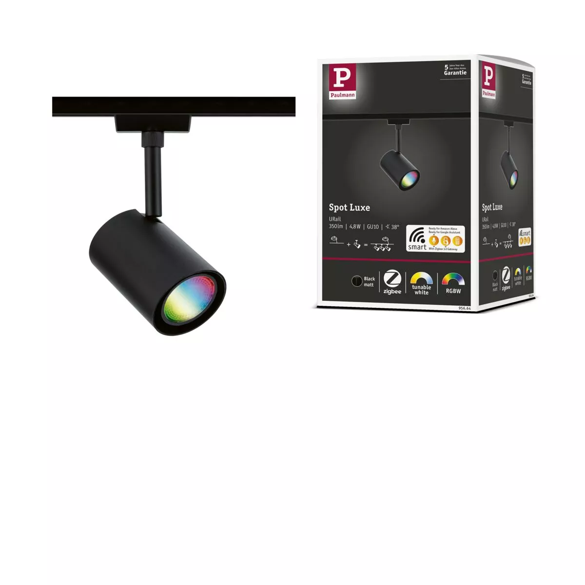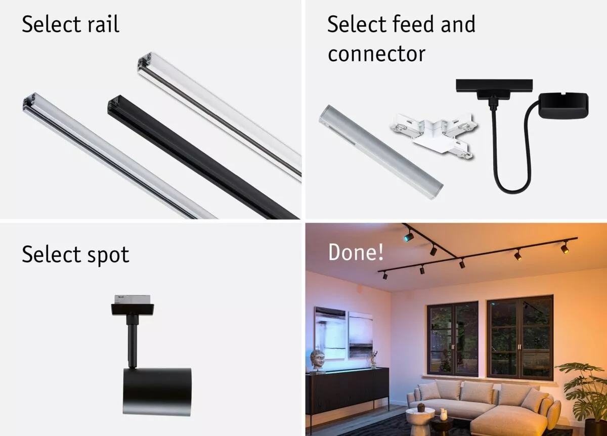 Reflektor na szynoprzewód Urail LUXE LED SH Zigbee GU10 4,8W 350lm 2200K-6500K 230V czarny matowy / tworzywo sztuczne
