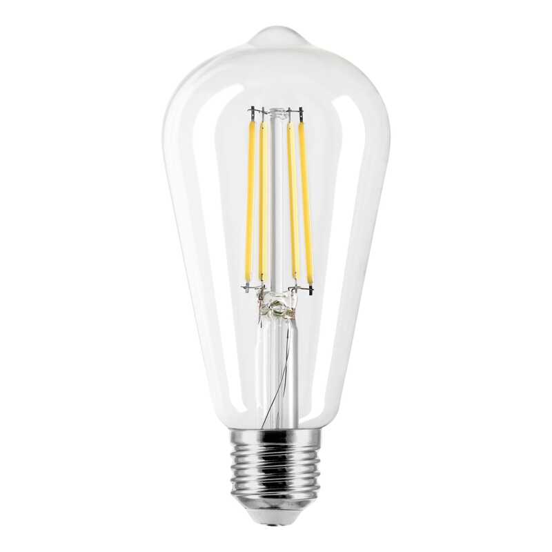 Źródło światła LED filament E27 ST64, 8W, 1050lm, 4000K, kąt świecenia 320°, D64x146mm, klosz transparentny, klasa enertetyczna E, gwarancja 2 lata