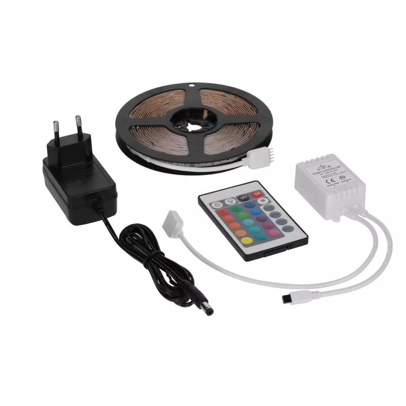 Zestaw taśma 5 metrów LED RGB+W WW + zasilacz 12W/m 180 lm/m (120°) + sterownik, IP00, klasa energetyczna G