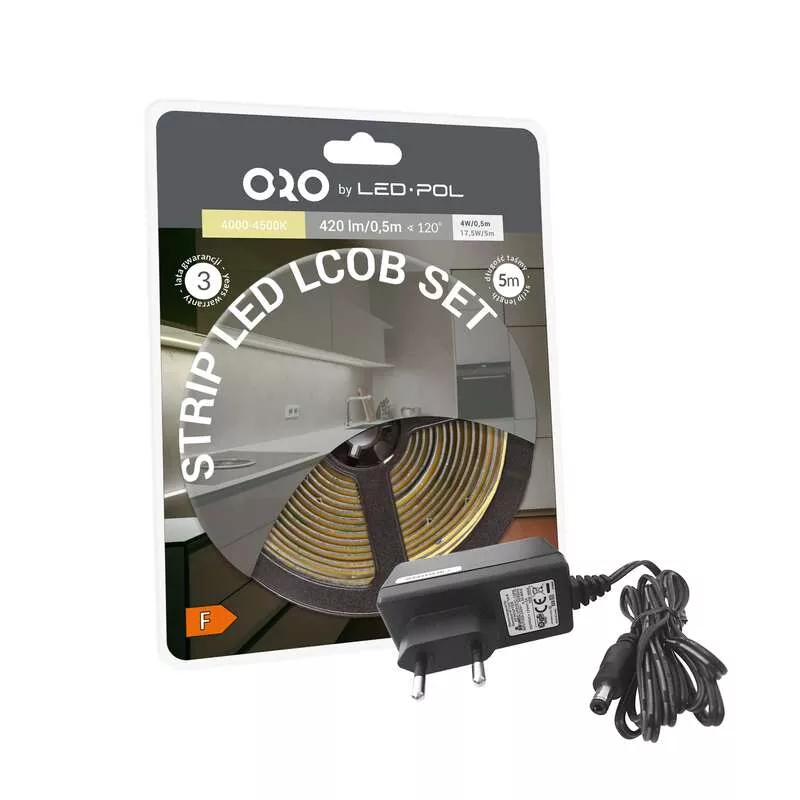 Zestaw taśma 5 metrów LCOB 320 diod/metr DW IP20 + zasilacz 30W, klasa energetyczna F 2 lata gwarancji