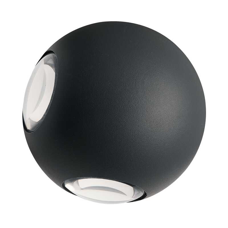 Oprawa elewacyjna w kształcie kuli, ciemnoszare aluminium, świecąca na 4 strony, 9W 450Lm,105x75mm, IP54, klasa energetyczna G