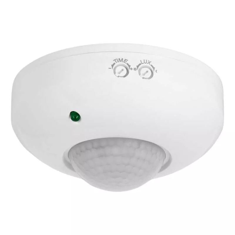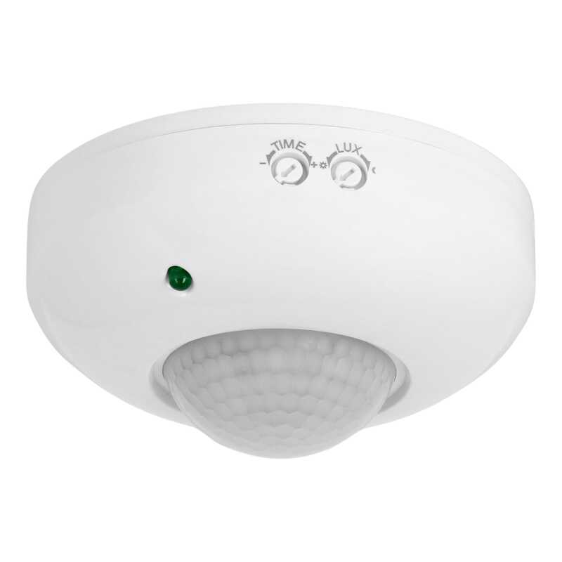 Czujnik ruchu podczerwieni PIR max 1200W 120°x360° Zasięg: 12m Reg.Czasu: 15s-6m Reg nat. 3-2000Lx Montaż 2,2-4m Fi115x55 IP20 5 lat gwarancji