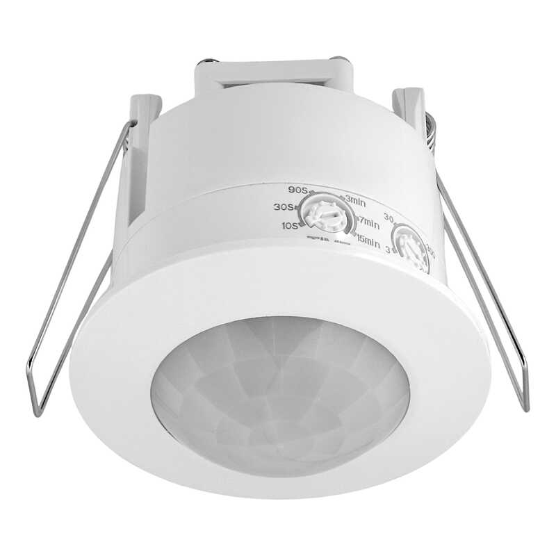 Czujnik ruchu podczerwieni PIR montaż podtynkowy max 1200W 120°x360° Zasięg: max 6m Reg. Czasu 15s-15min Reg nat. 3-2000Lux Montaż 2,2-4m Fi76x75 Otwór ins. Fi64mm 5 lat gwarancji