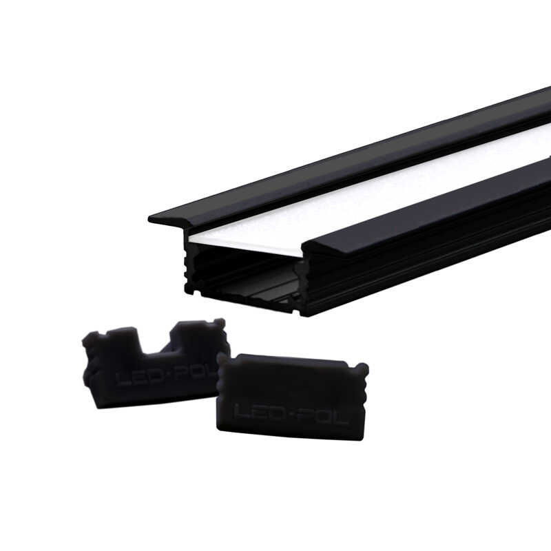 Zestaw profil czarny wewnętrzny 2m + zaślepki + klosz click