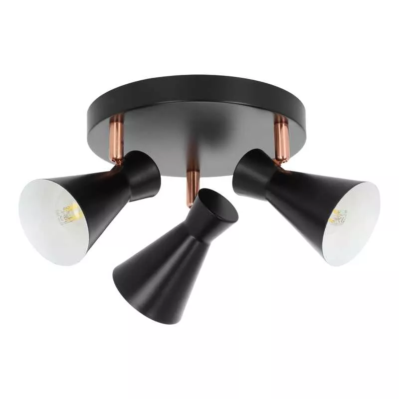 Reflektor 3 x E14, max. moc źródła 10W, kolor czarno-biały, wymiary (dł./szer./wys./śr. klosza): 200x200x125x80mm, materiał: stal, pełna regulacja kątowa
