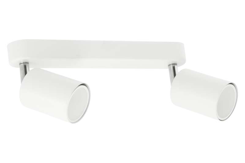 Reflektor 2 x GU10, max moc źródła 10W, kolor biały, wymiary (dł./szer./wys./śr. klosza): 260x55x90x55mm, materiał: stal, pełna regulacja kątowa