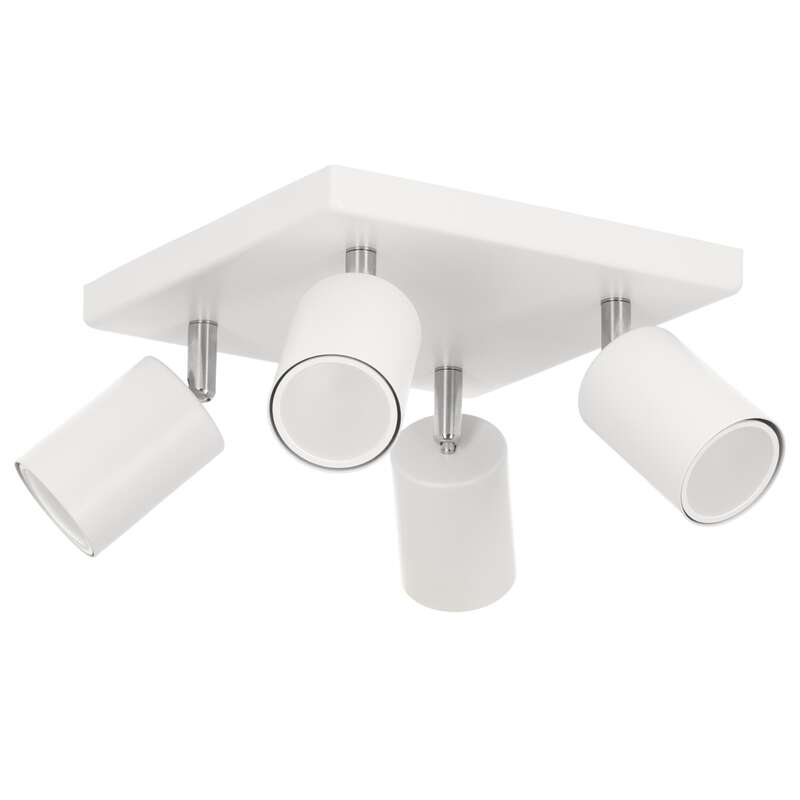Reflektor 4 x GU10, max moc źródła 10W, kolor biały, wymiary (dł./szer./wys./śr. klosza): 210x210x90x55mm, materiał: stal, pełna regulacja kątowa