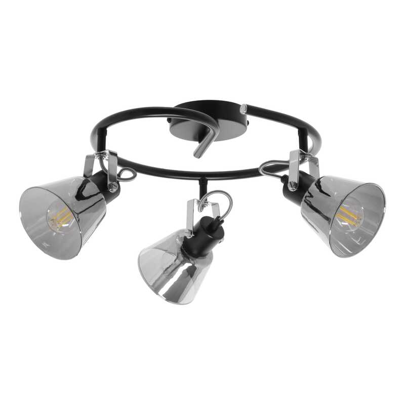 Reflektor 3 x E14, max moc źródła 10W, kolor czarny, wymiary (dł./szer./wys./śr. klosza): 320x320x175x100mm, materiał: stal, pełna regulacja kątowa
