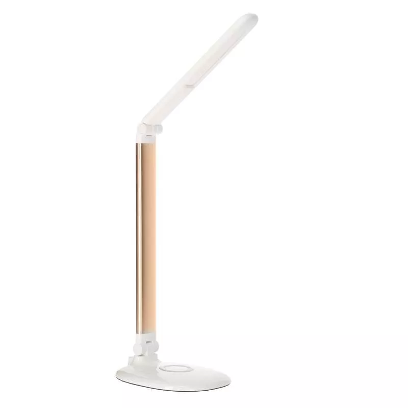 Lampka biurkowa 9W 520lm/280lm, klasa modułu E, 3000/4000/6000K, 3-poziomowa regulacja jasności, wyłącznik dotykowy, brak efektu olśnienia, funkcja Night Lihgt, kolor biało-złoty, materiał: ABS, przewód zasilający 1,5m